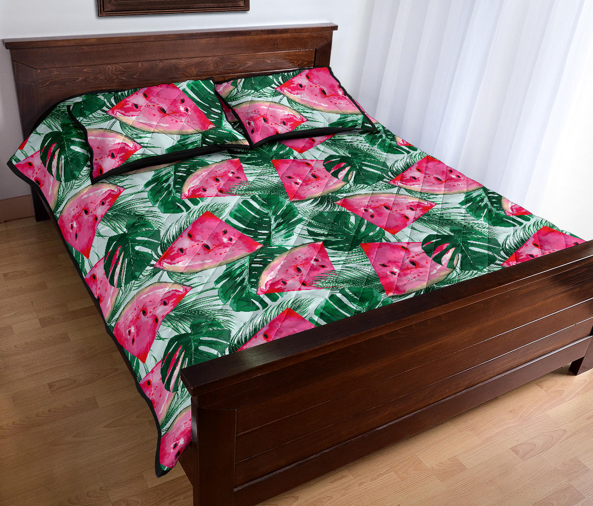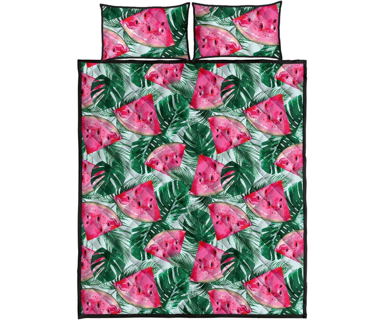 Watermelons tropical palm leaves pattern Quilt Bed Set