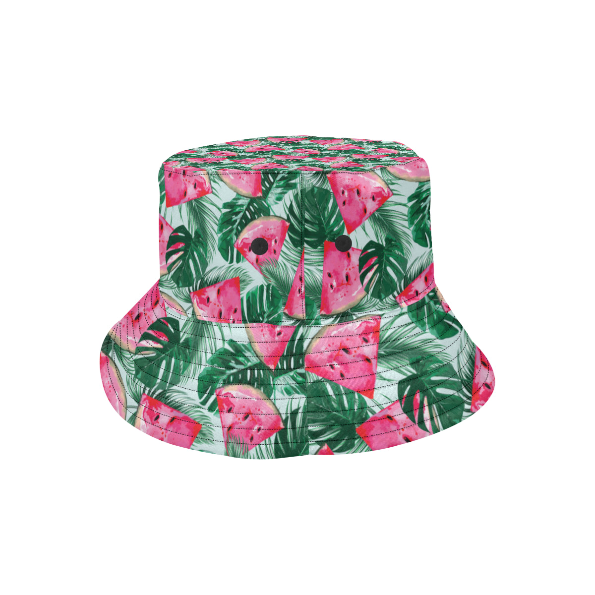 Watermelons tropical palm leaves pattern Unisex Bucket Hat is a uniqued design and limited item. It made to order, hand printed, and sewn with love in our factory.