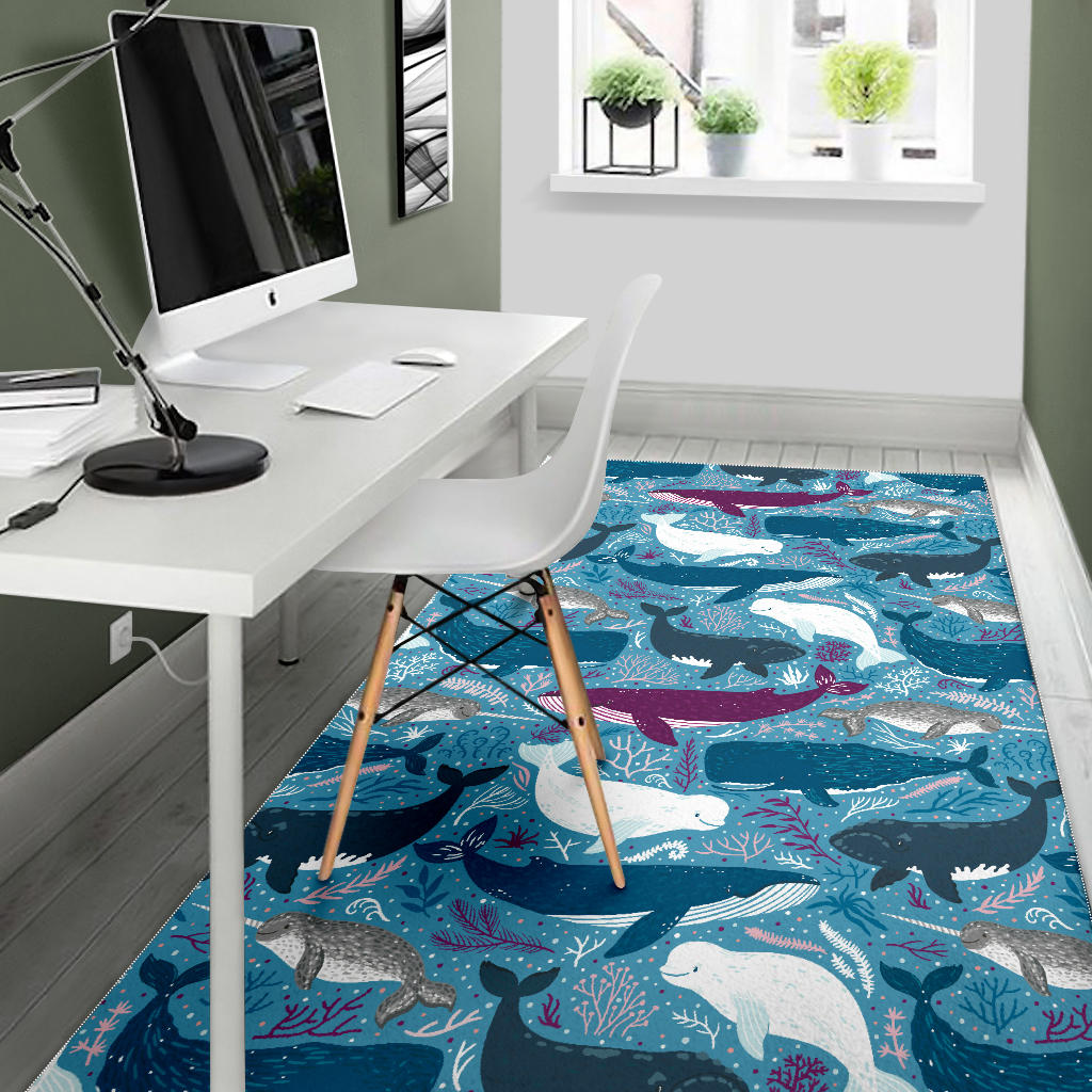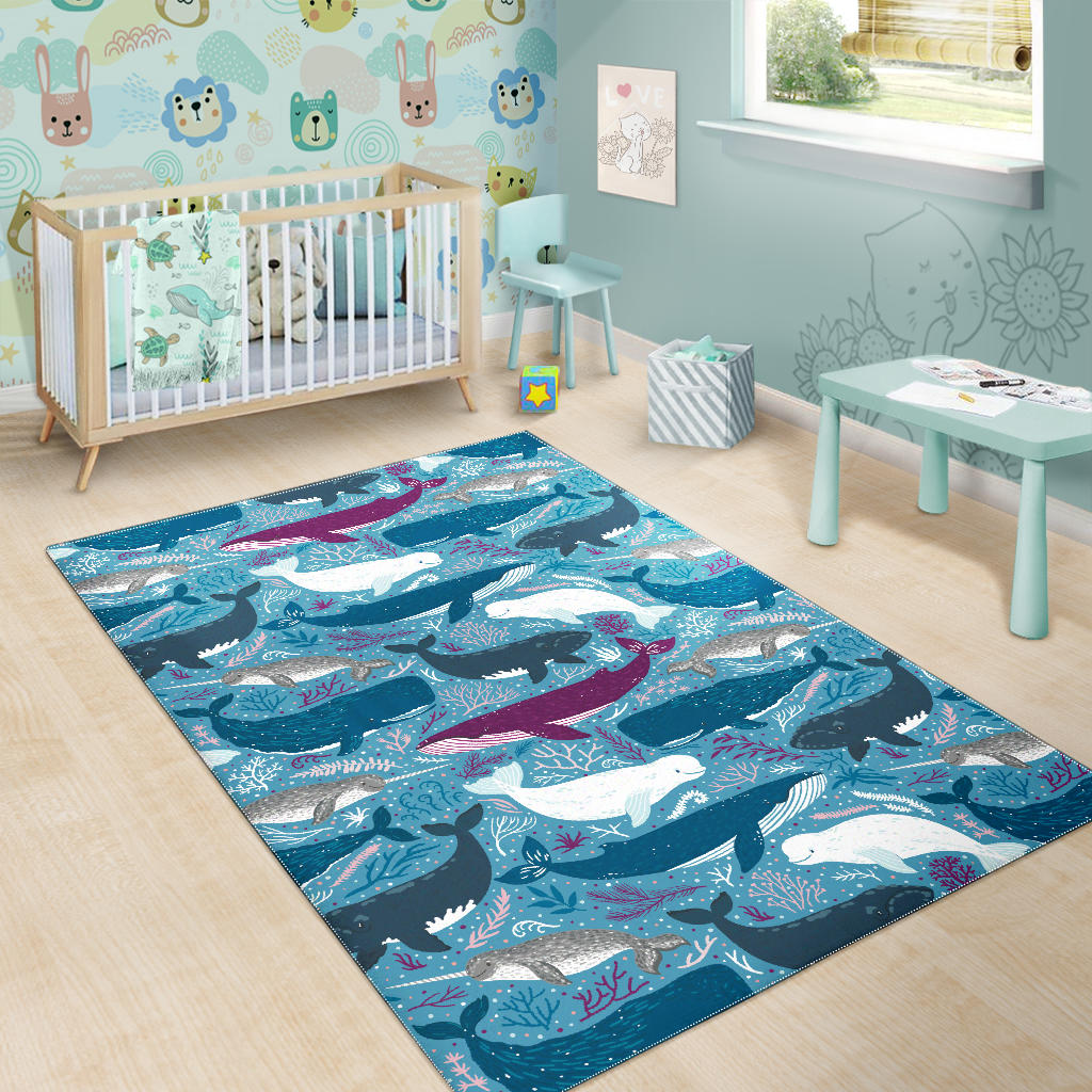 Whale design pattern Area Rug is a uniqued design and limited item. It made to order, hand printed, and sewn with love in our factory.