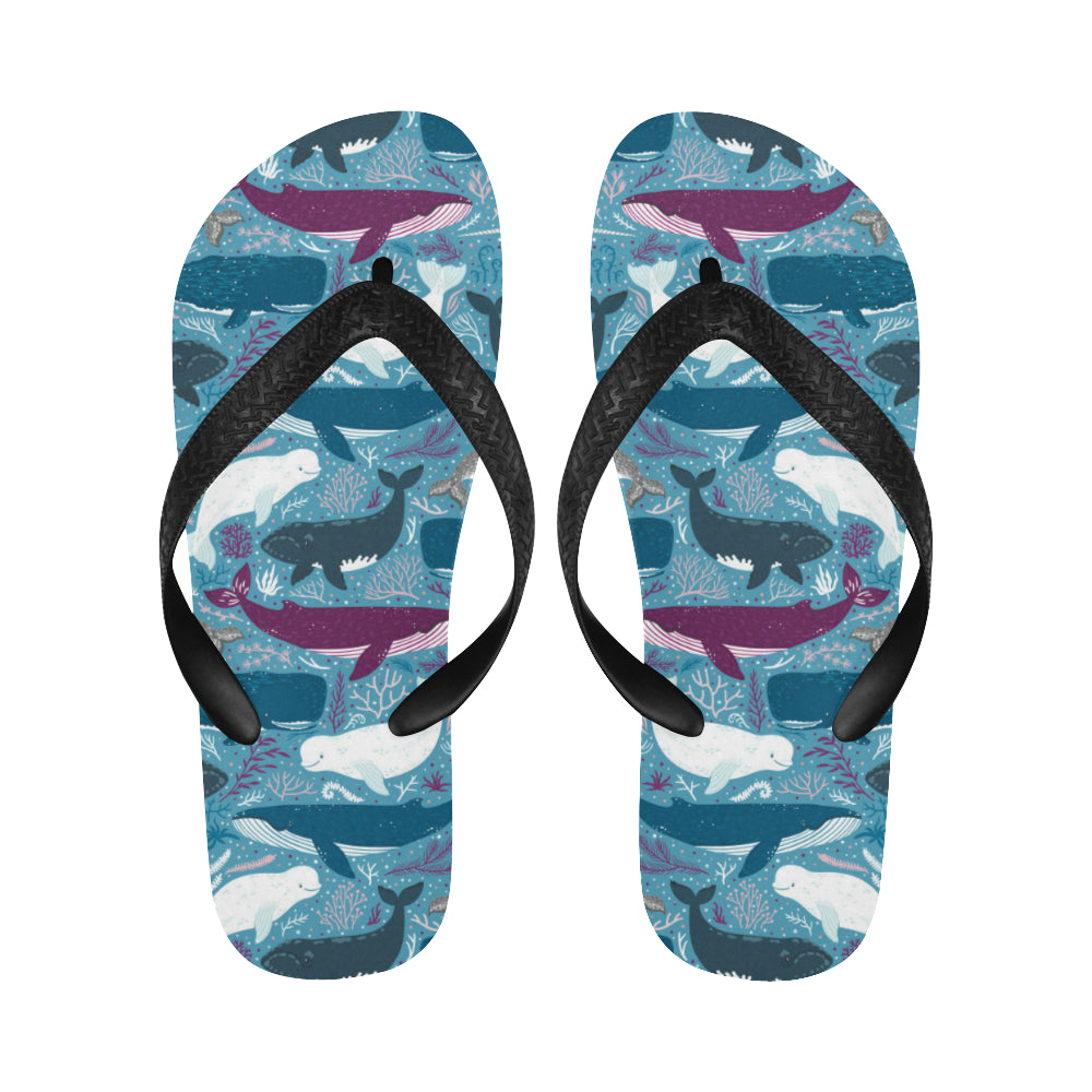 Whale design pattern Unisex Flip Flops is a uniqued design and limited item. It made to order, hand printed, and sewn with love in our factory.