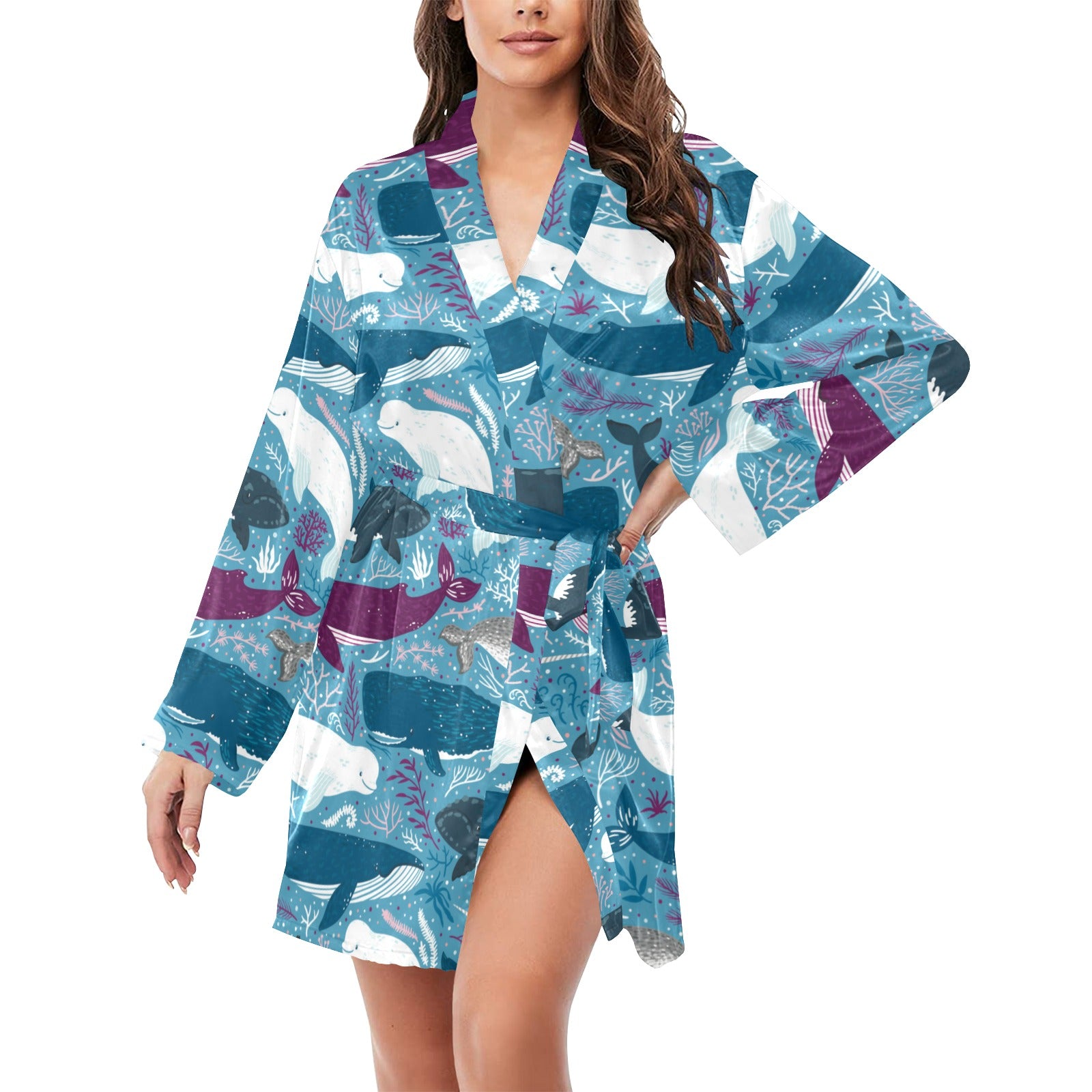 Whale design pattern Women's Long Sleeve Belted Night Robe