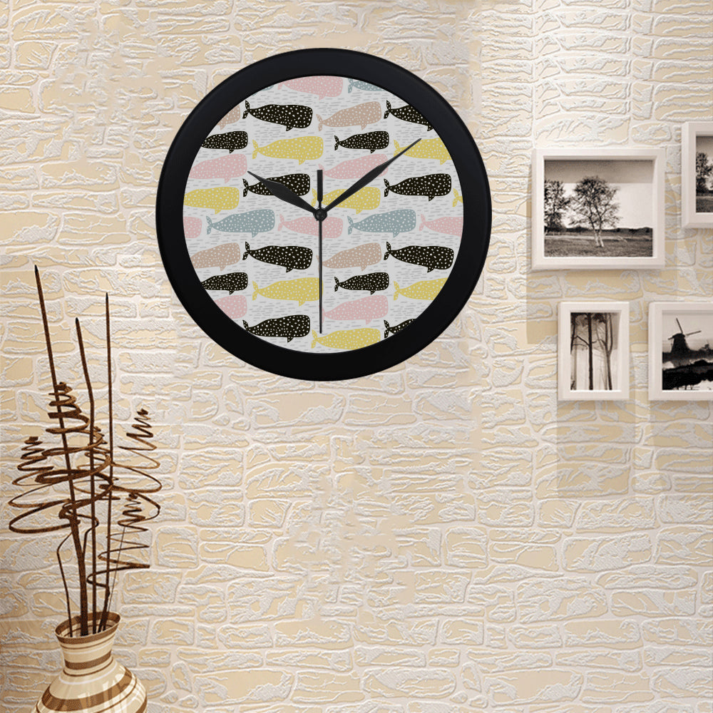 Whale dot pattern Elegant Black Wall Clock is a uniqued design and limited item. It made to order, hand printed, and sewn with love in our factory.