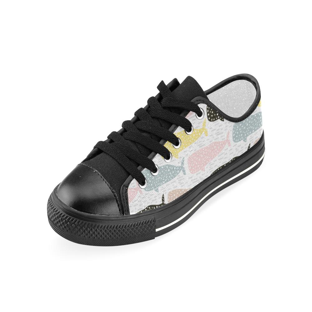 Whale dot pattern Kids' Boys' Girls' Low Top Canvas Shoes Black