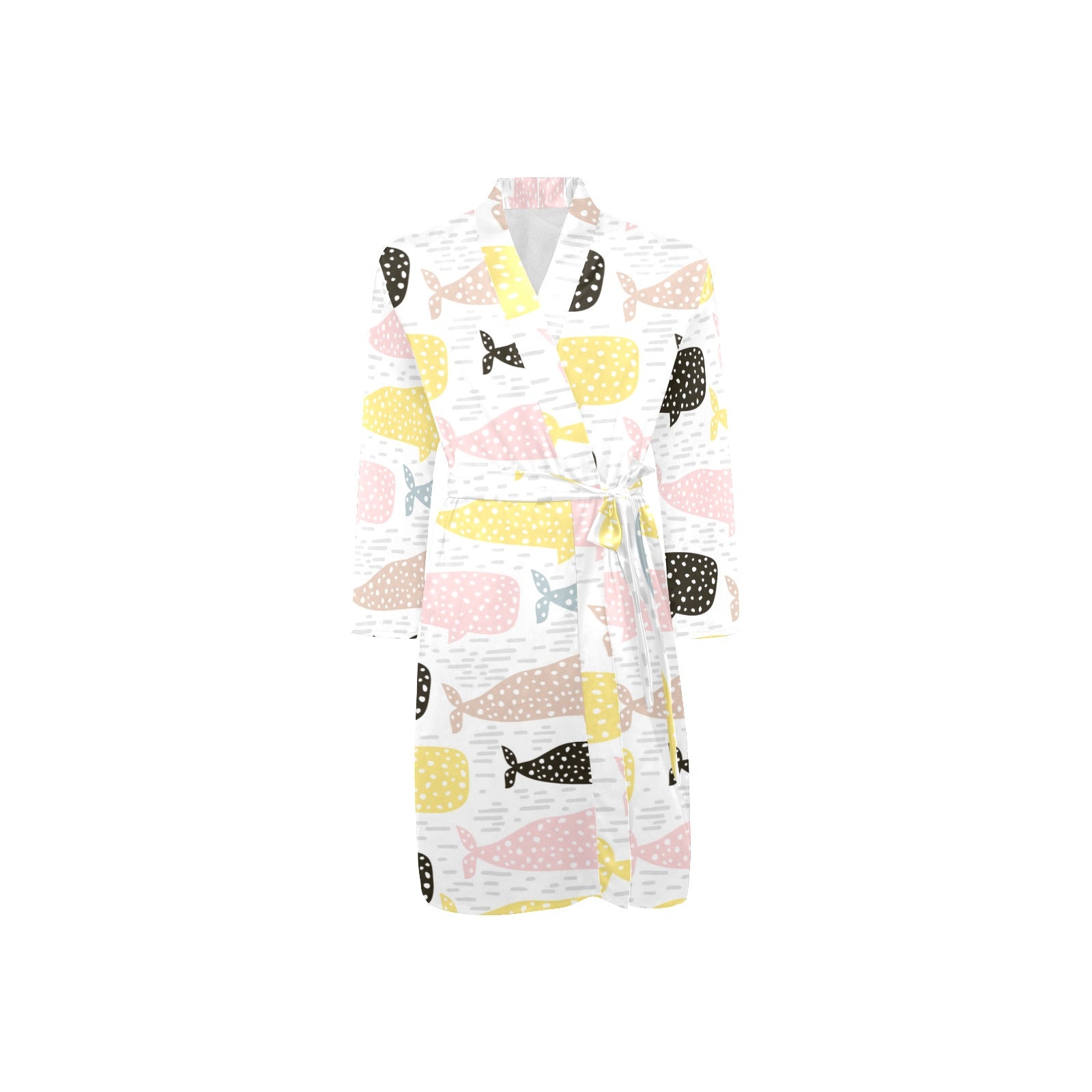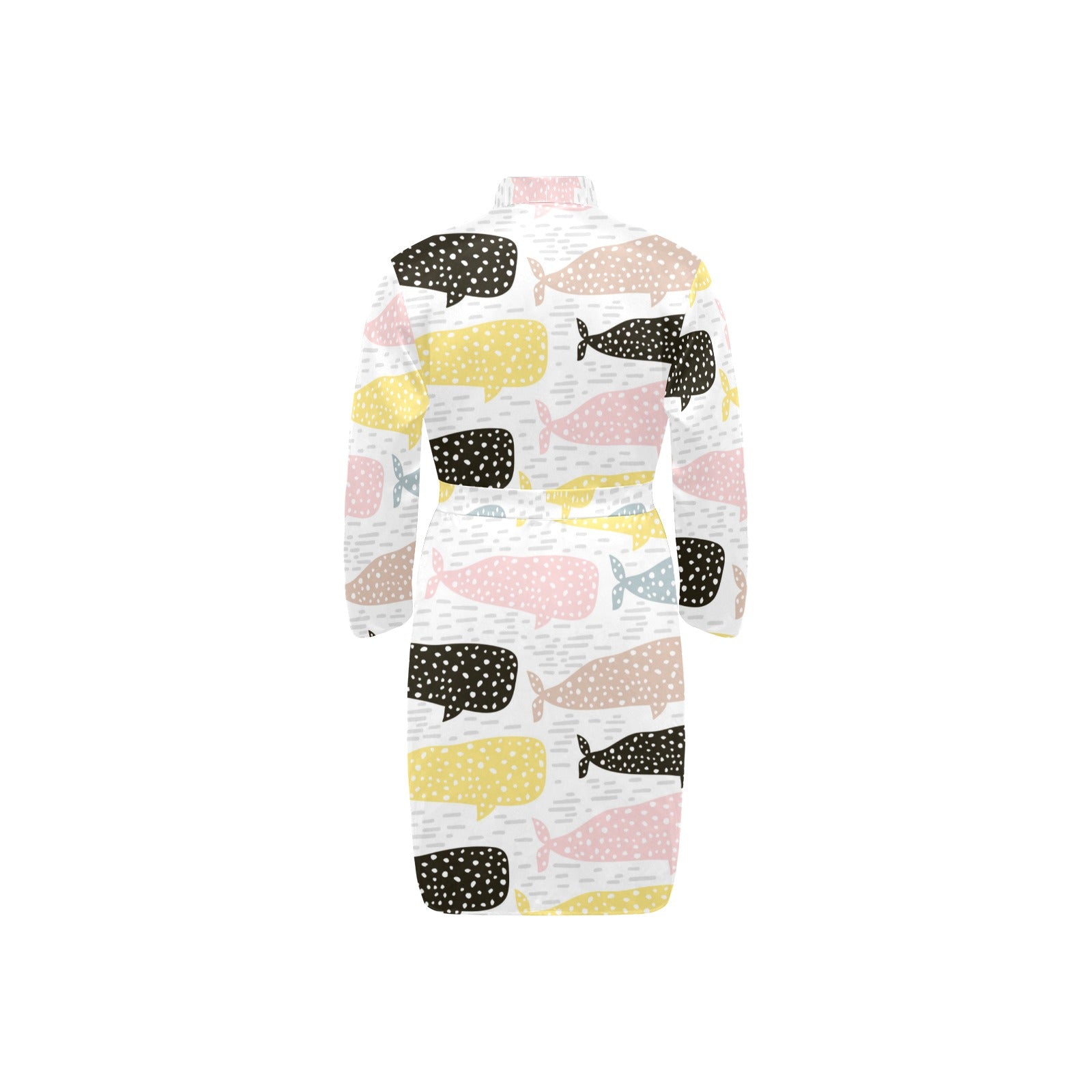 Whale dot pattern Men's Long Sleeve Belted Night Robe