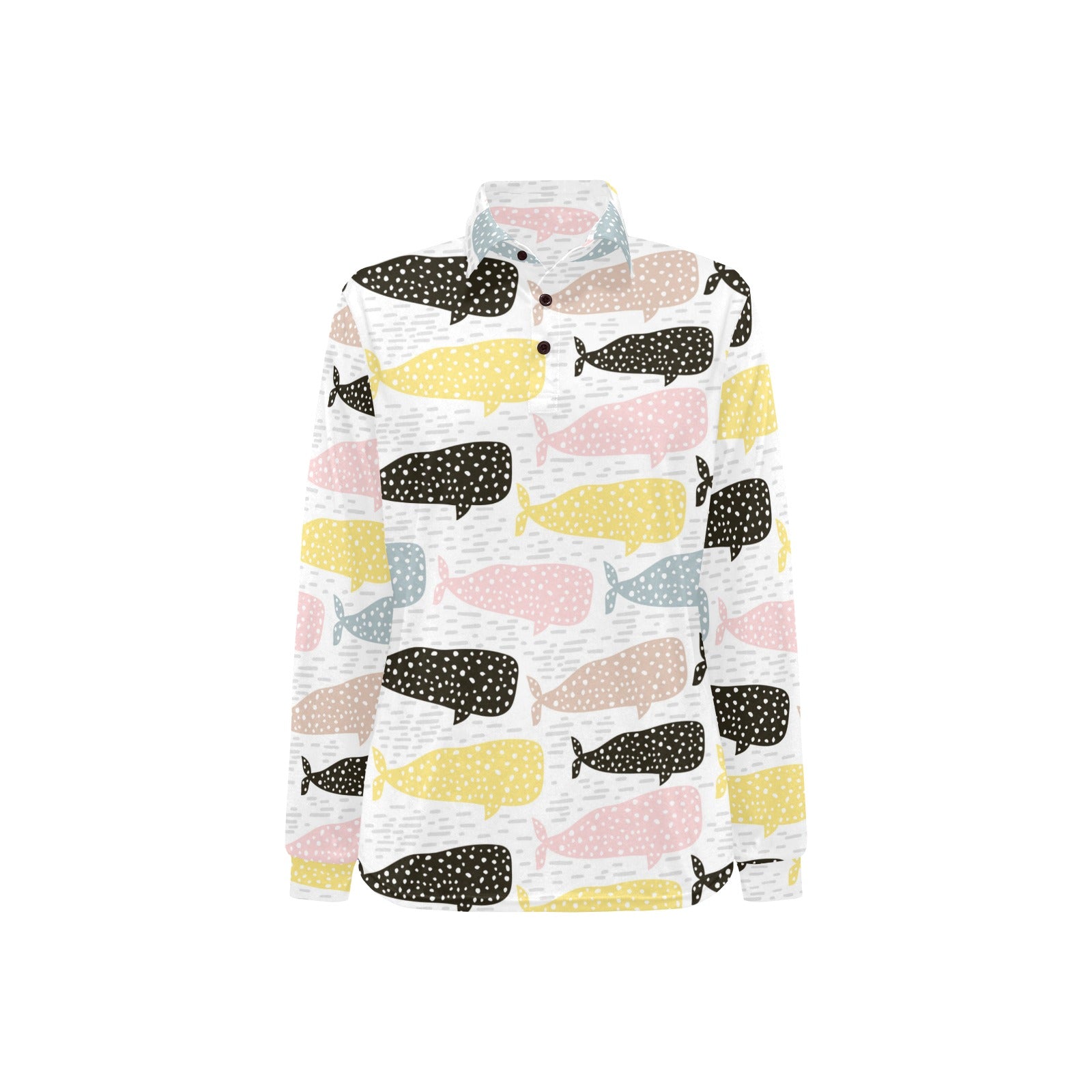 Whale dot pattern Women's Long Sleeve Polo Shirt