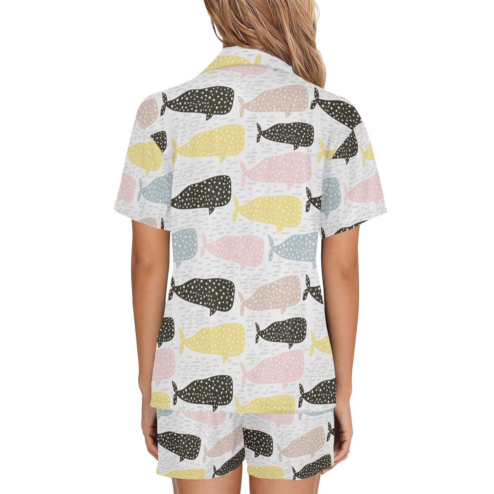 Whale dot pattern Women's V-Neck Short Pajama Set