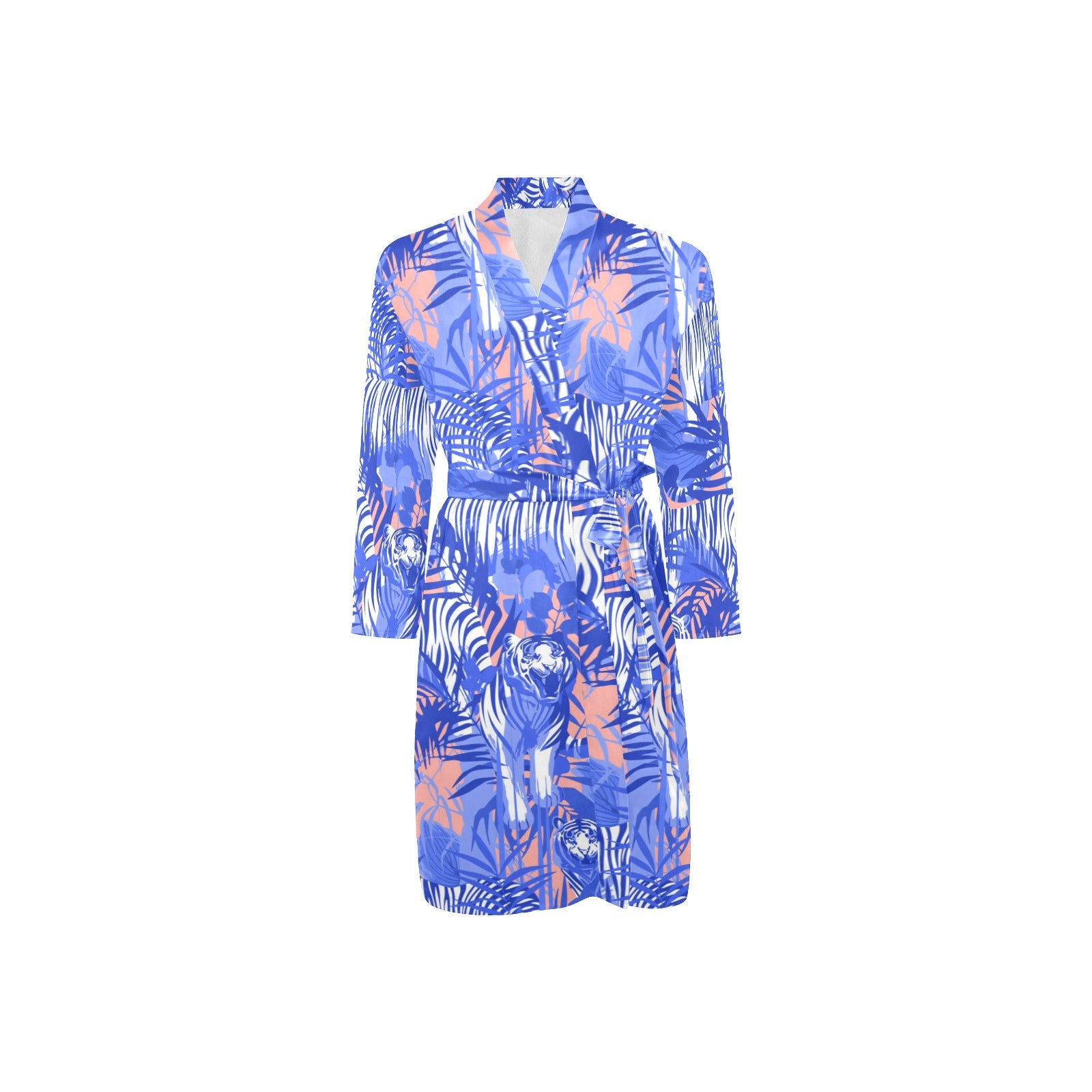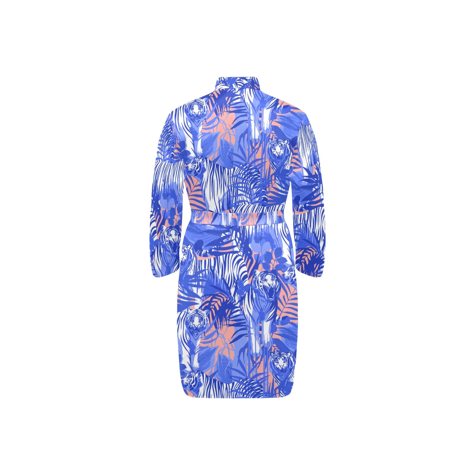 white bengal tigers pattern Men's Long Sleeve Belted Night Robe