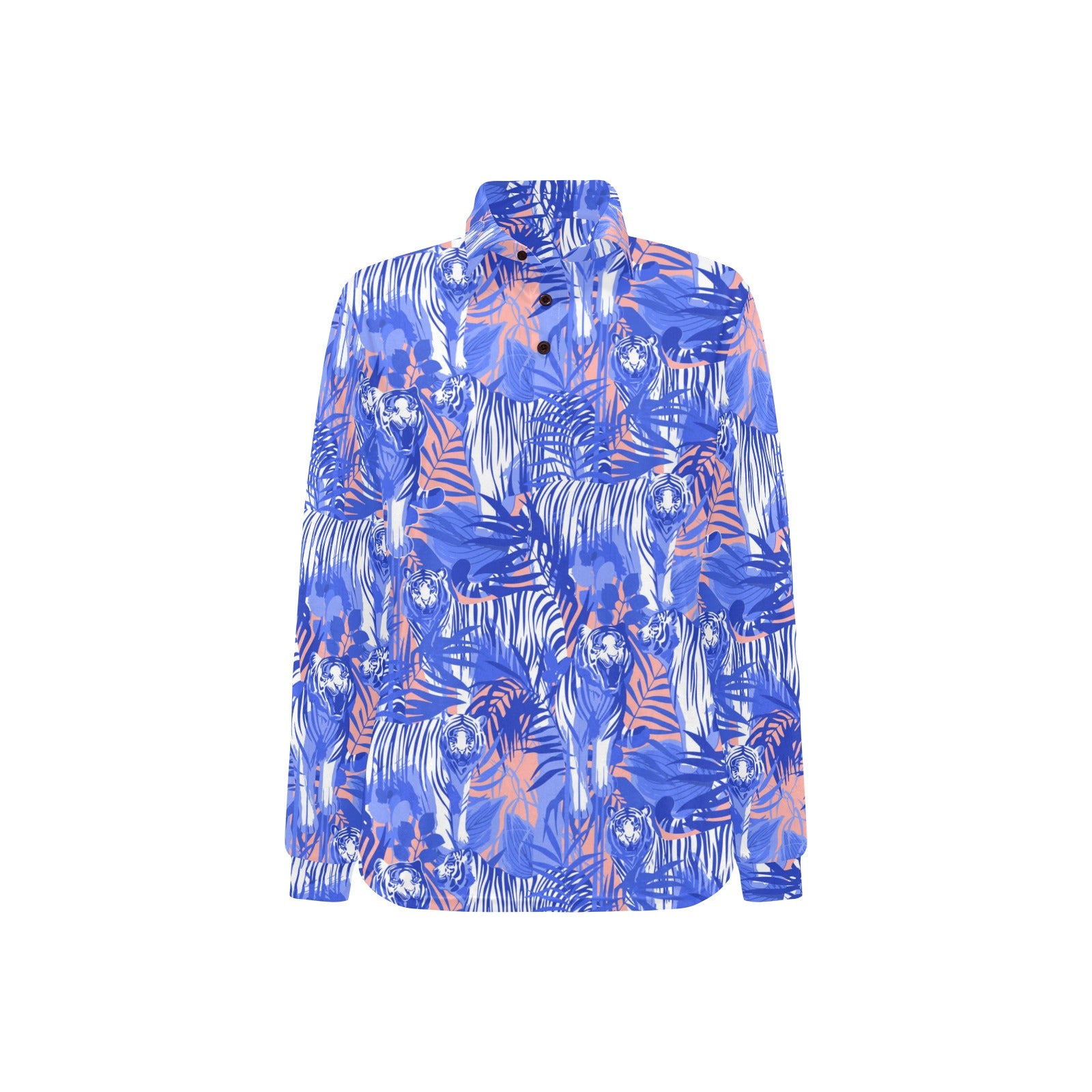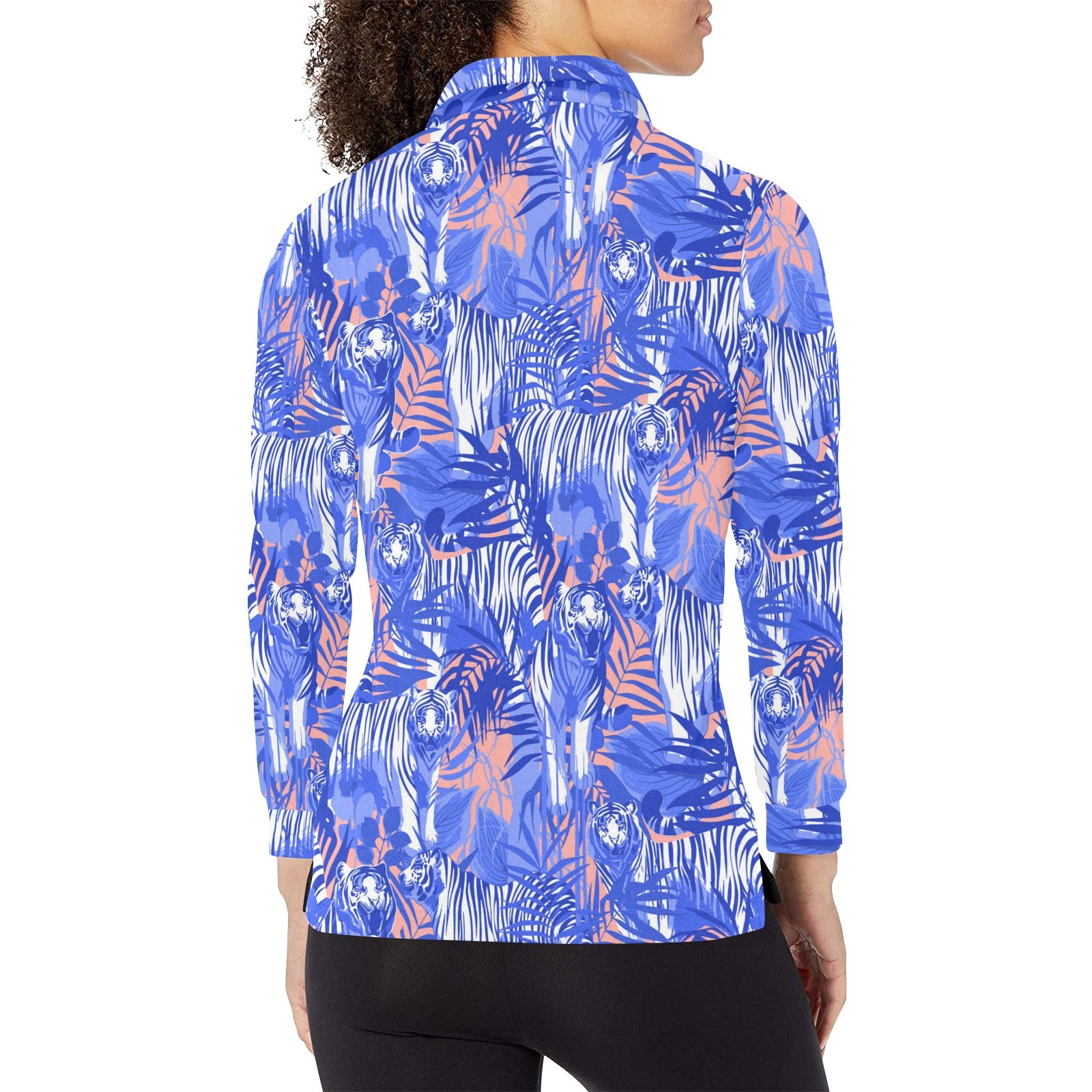 white bengal tigers pattern Women's Long Sleeve Polo Shirt
