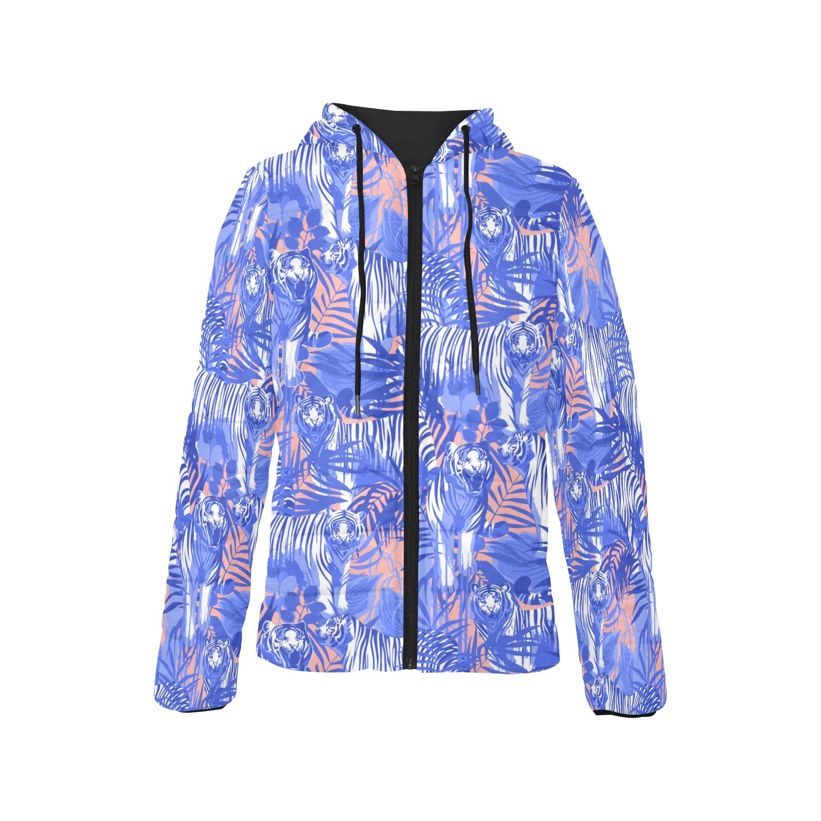 white bengal tigers pattern Women's Padded Hooded Jacket