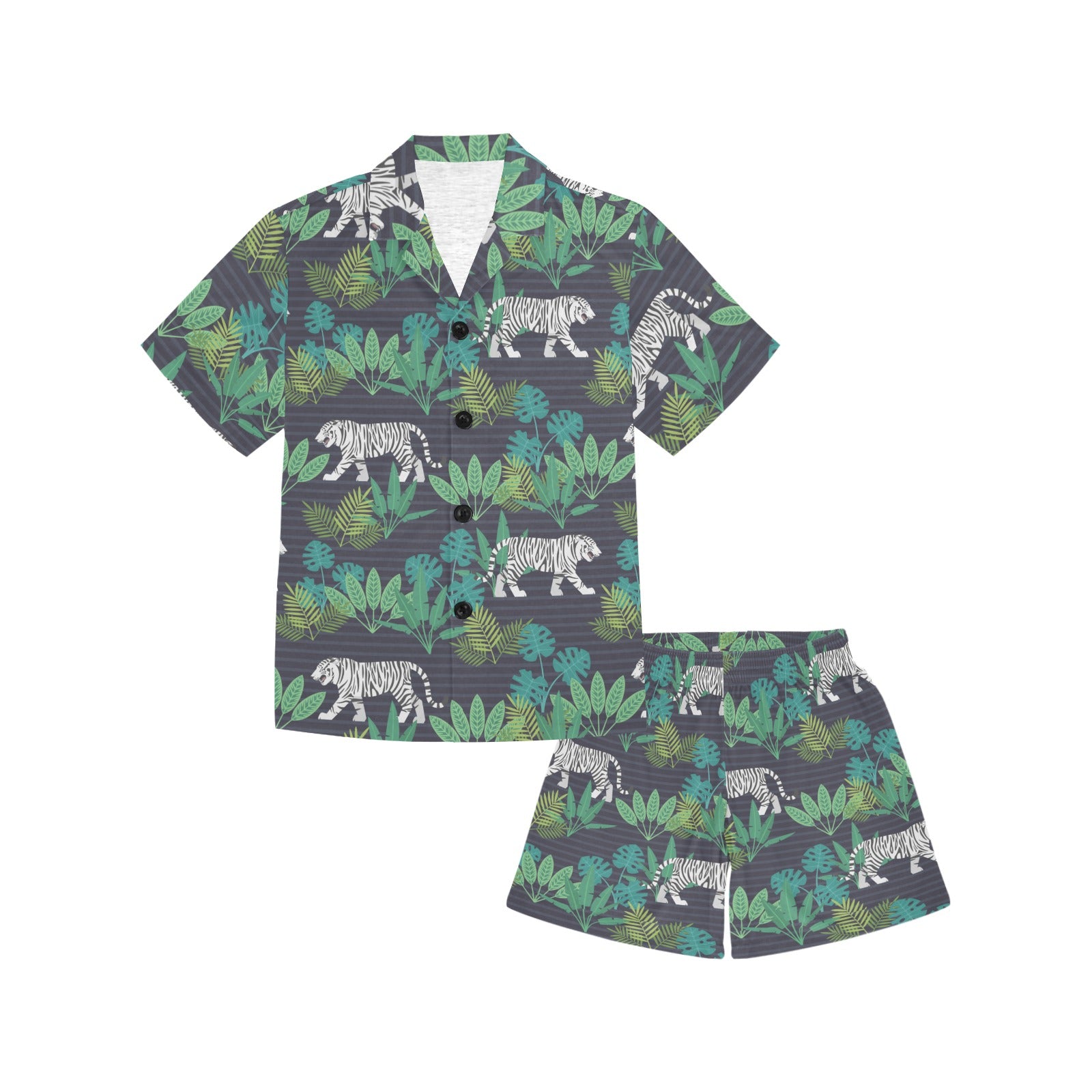 white bengal tigers tropical plant Kids' Boys' Girls' V-Neck Short Pajama Set