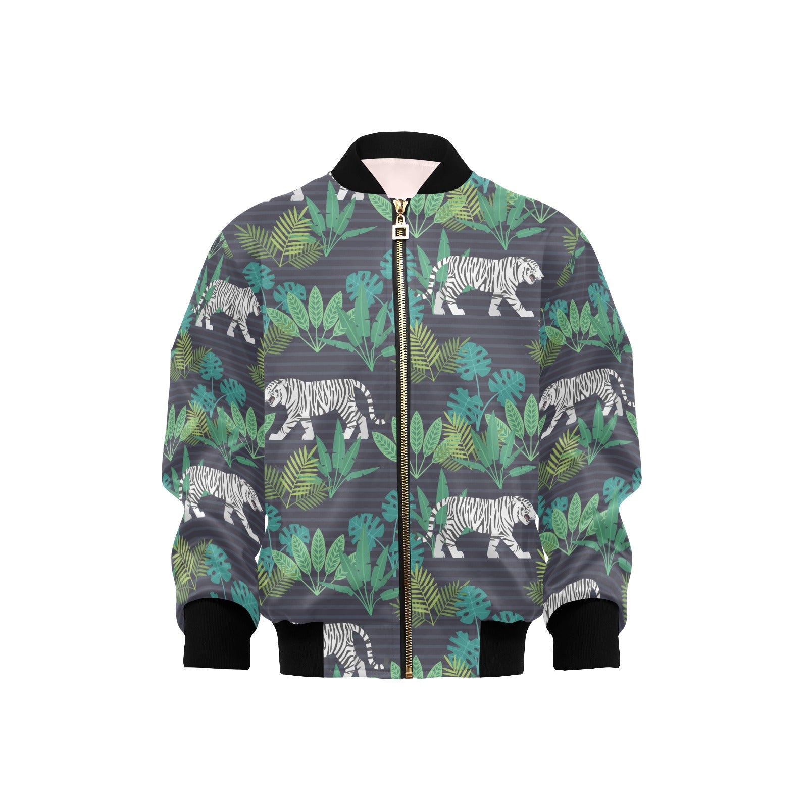 white bengal tigers tropical plant Kids' Boys' Girls' Bomber Jacket