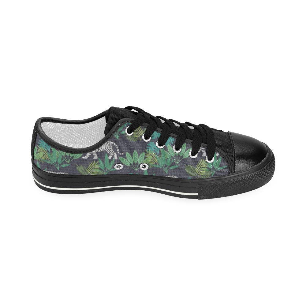 white bengal tigers tropical plant Kids' Boys' Girls' Low Top Canvas Shoes Black