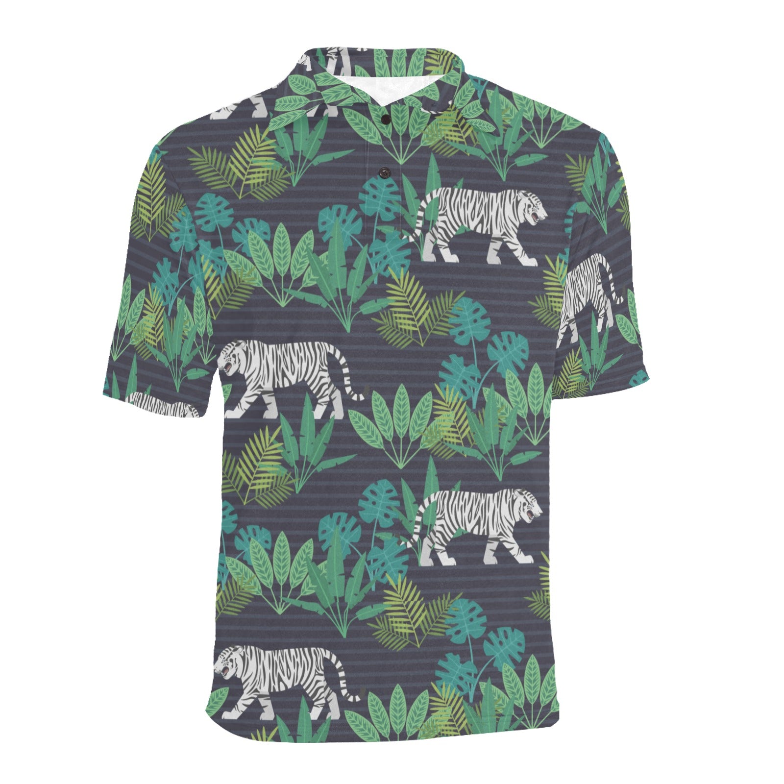 white bengal tigers tropical plant Men's All Over Print Polo Shirt