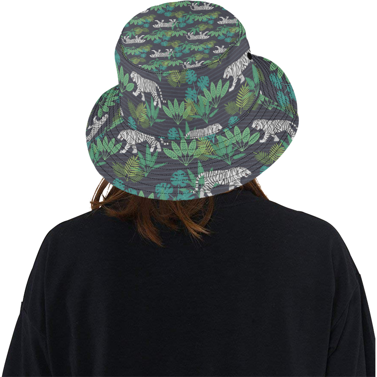 white bengal tigers tropical plant Unisex Bucket Hat is a uniqued design and limited item. It made to order, hand printed, and sewn with love in our factory.