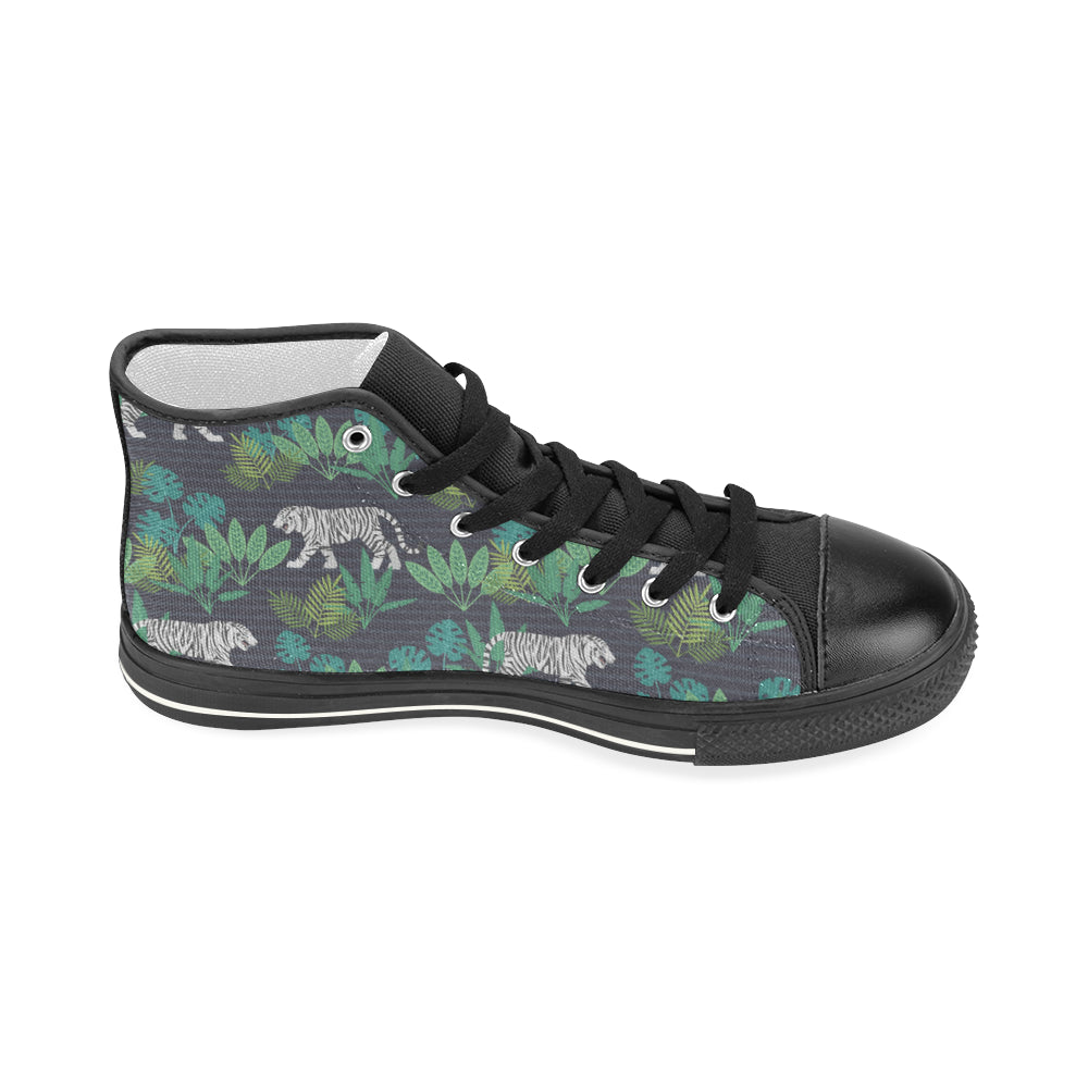white bengal tigers tropical plant Women's High Top Canvas Shoes Black