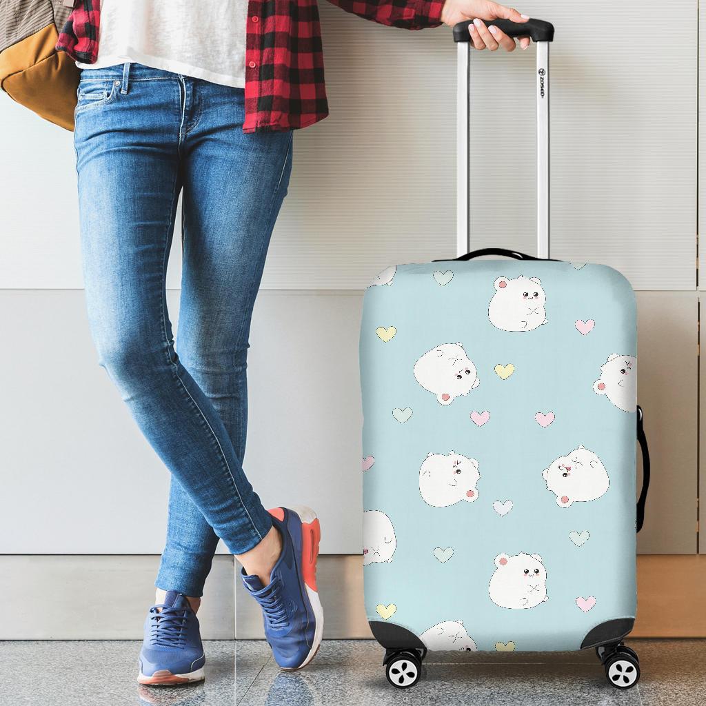 White Cute Hamsters Heart Pattern Cabin Suitcases Luggages
