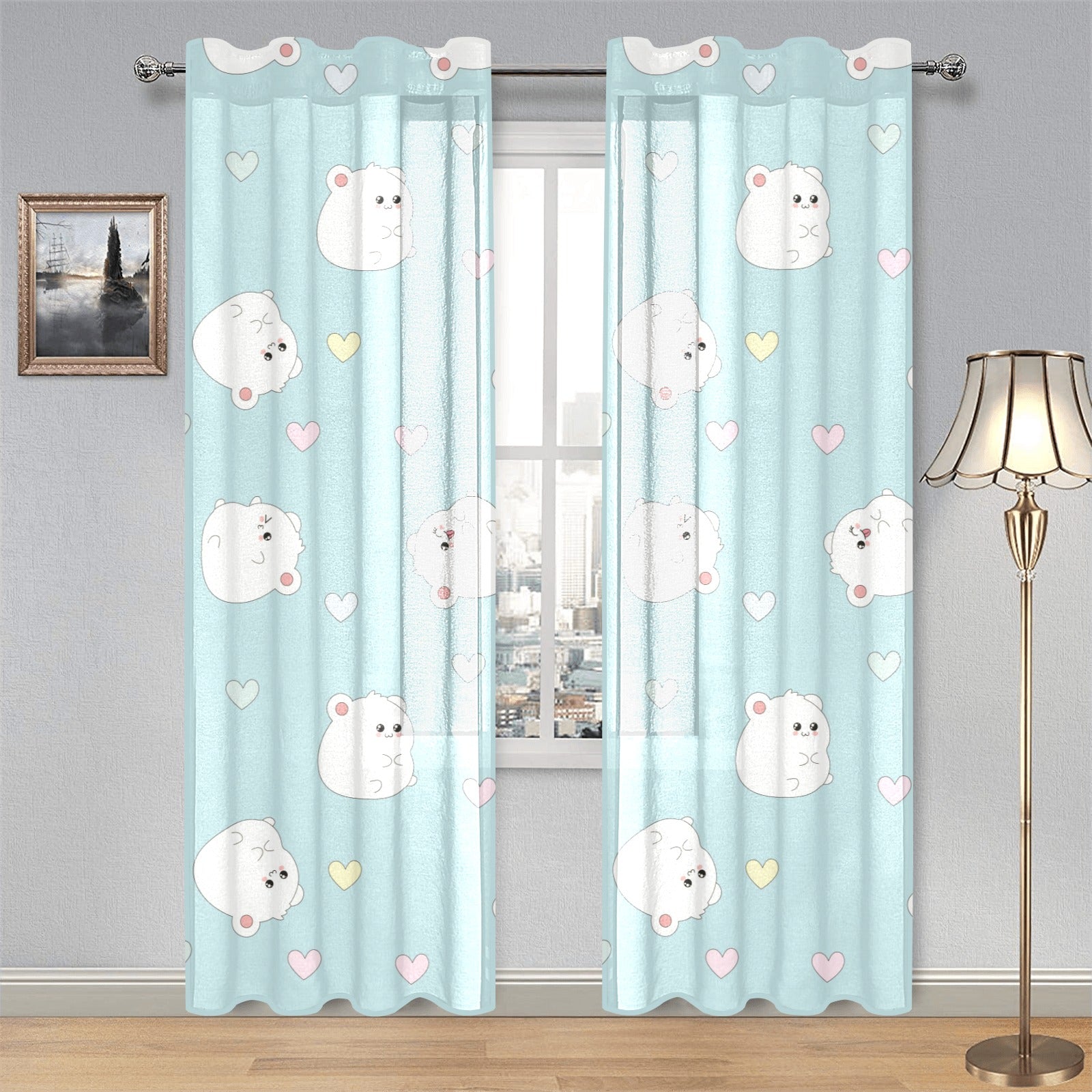 White cute hamsters heart pattern Gauze Curtain