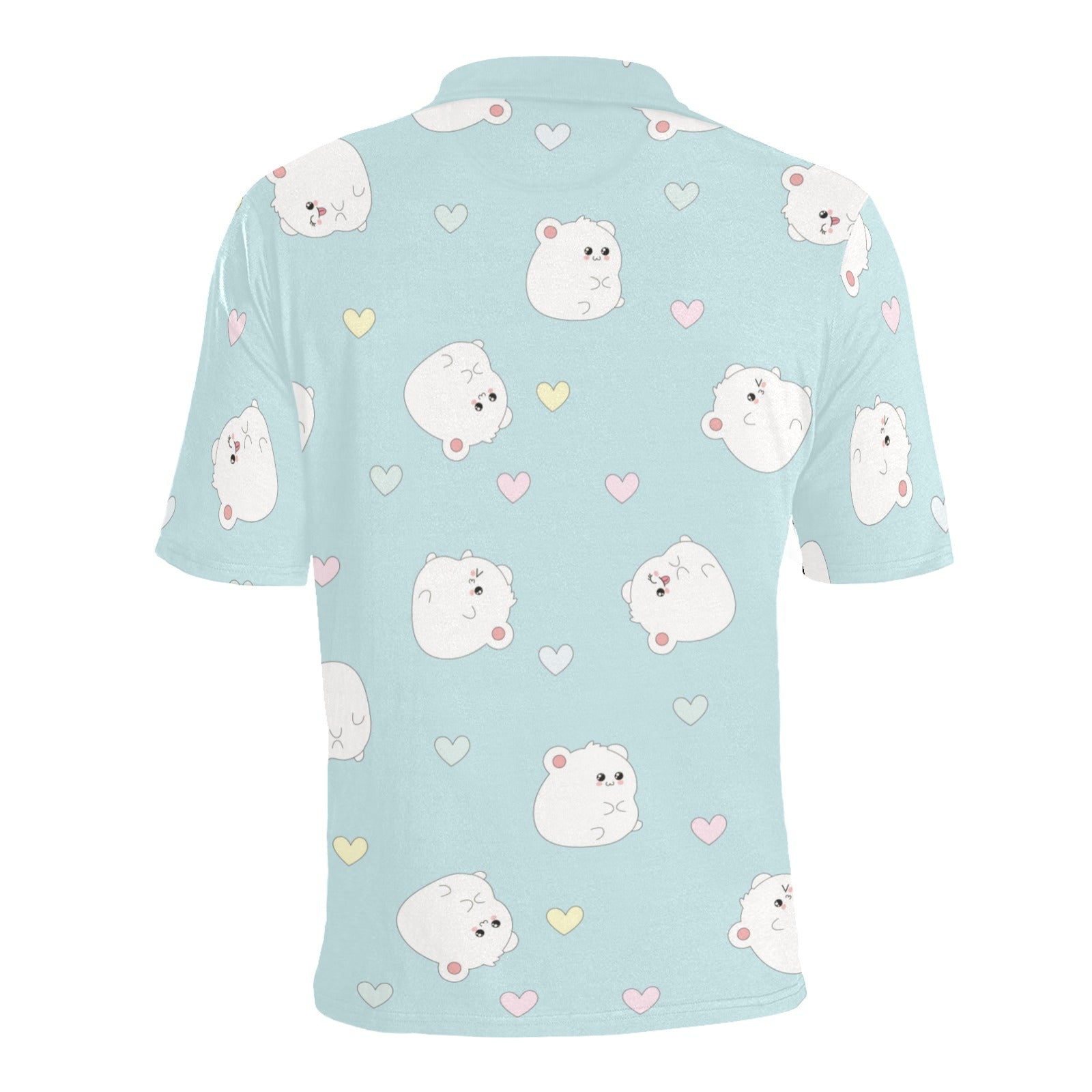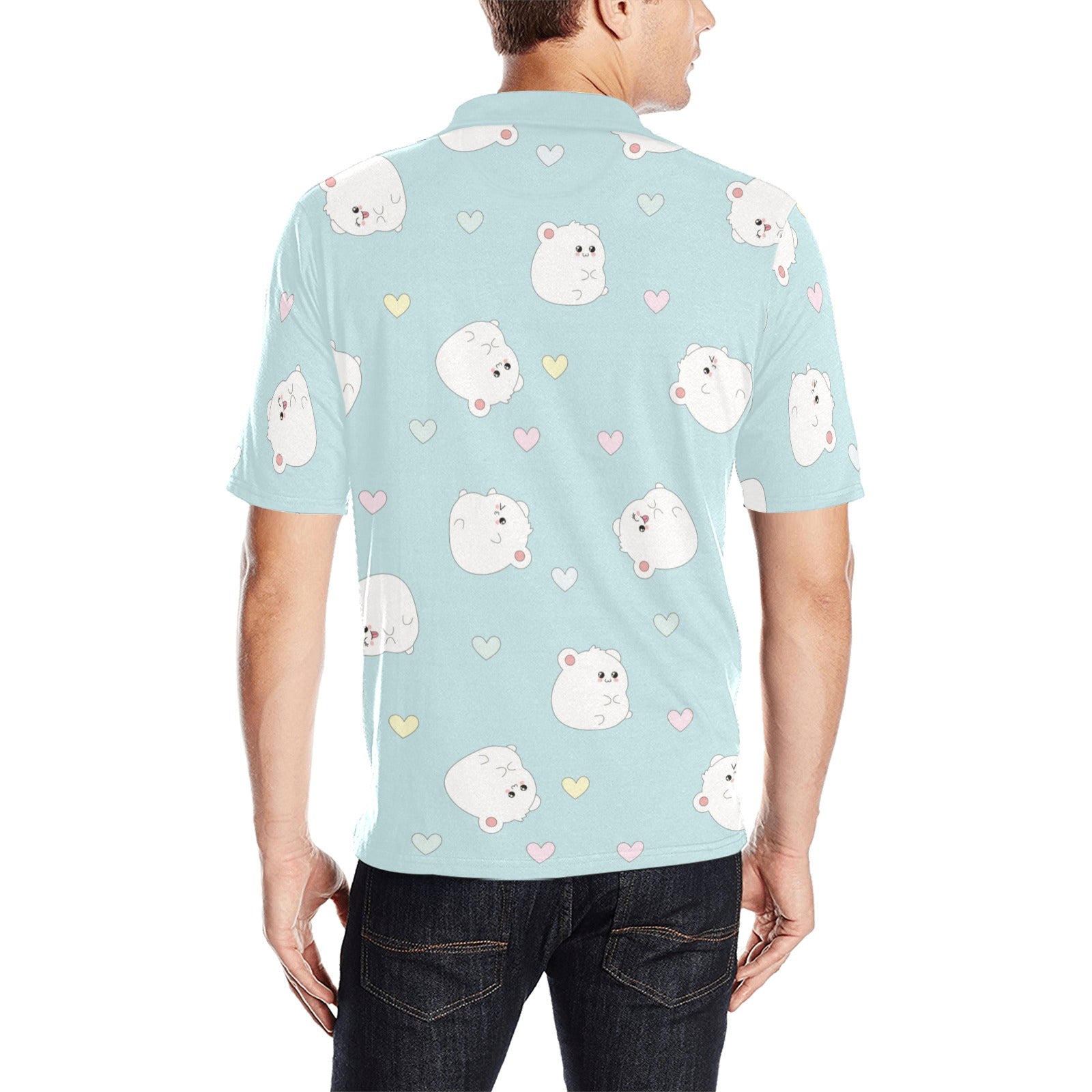 White cute hamsters heart pattern Men's All Over Print Polo Shirt
