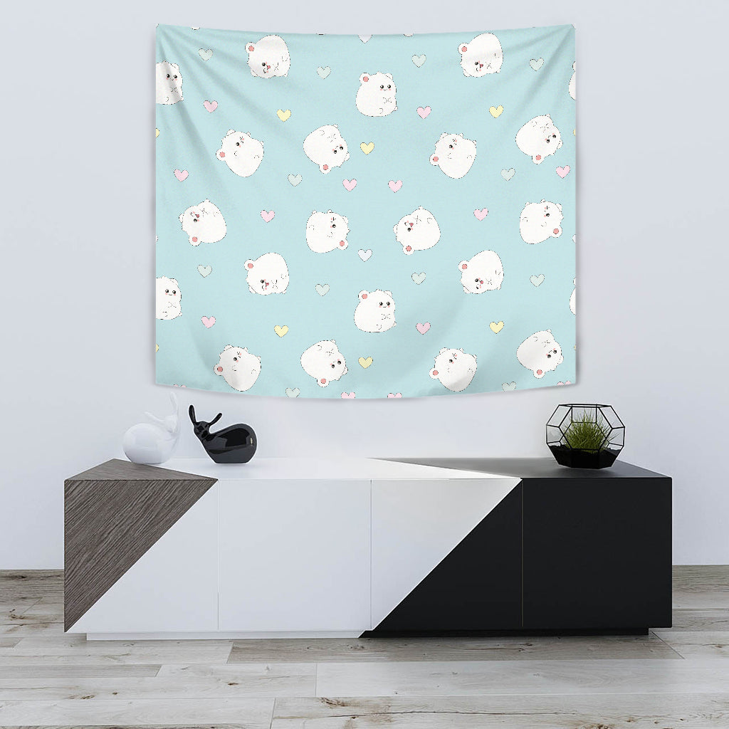 White cute hamsters heart pattern Tapestry is a uniqued design and limited item. It made to order, hand printed, and sewn with love in our factory.