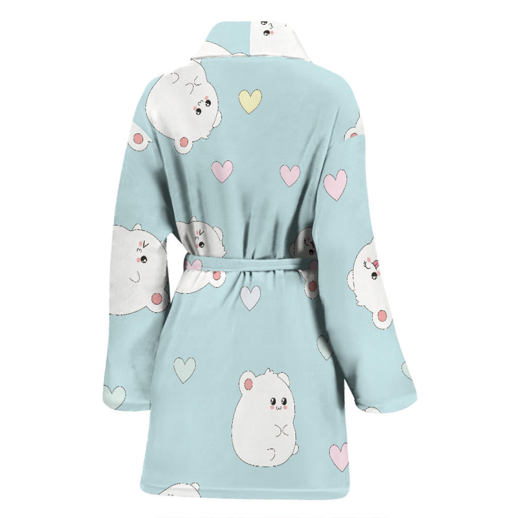 White Cute Hamsters Heart Pattern Women'S Bathrobe