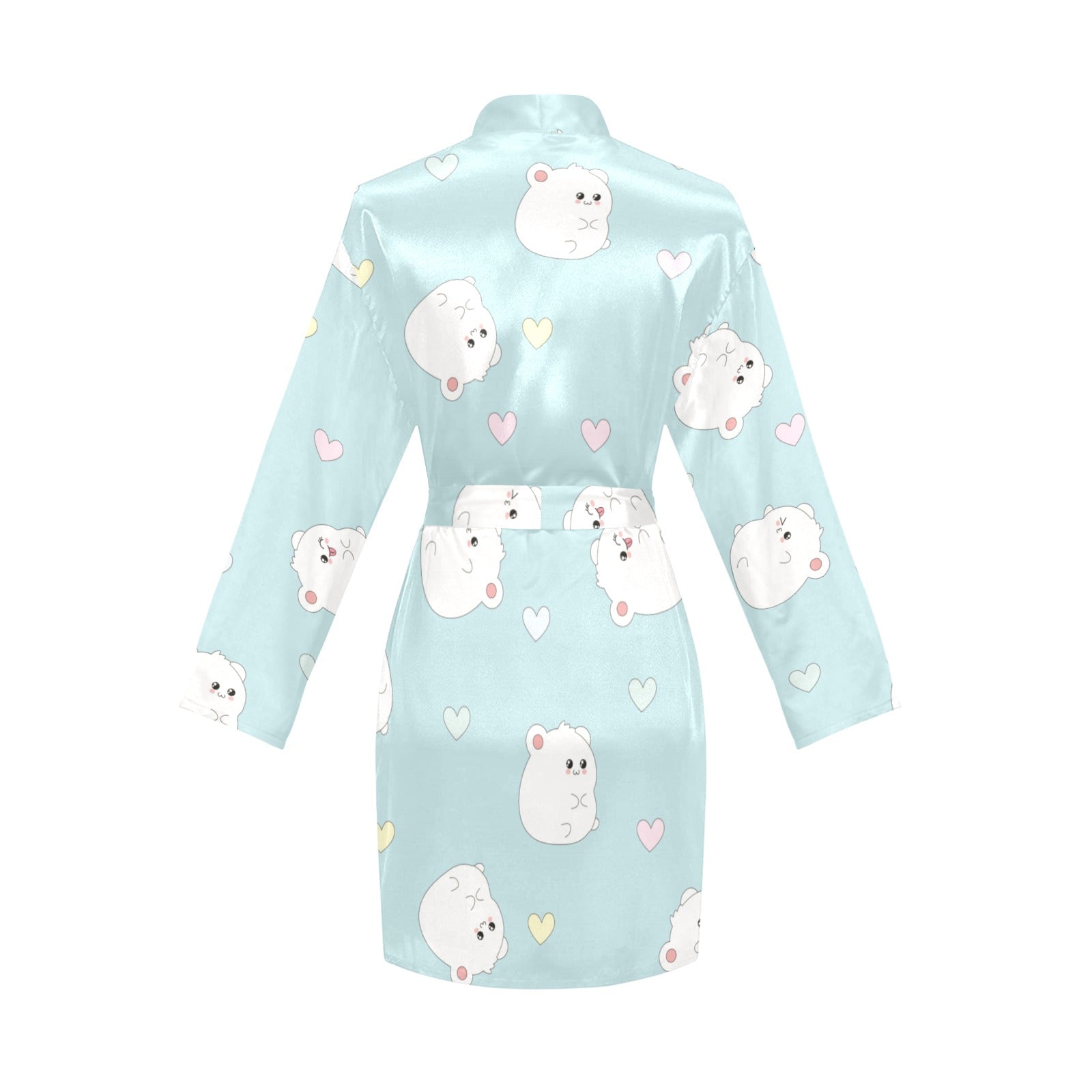 White cute hamsters heart pattern Women's Long Sleeve Belted Night Robe