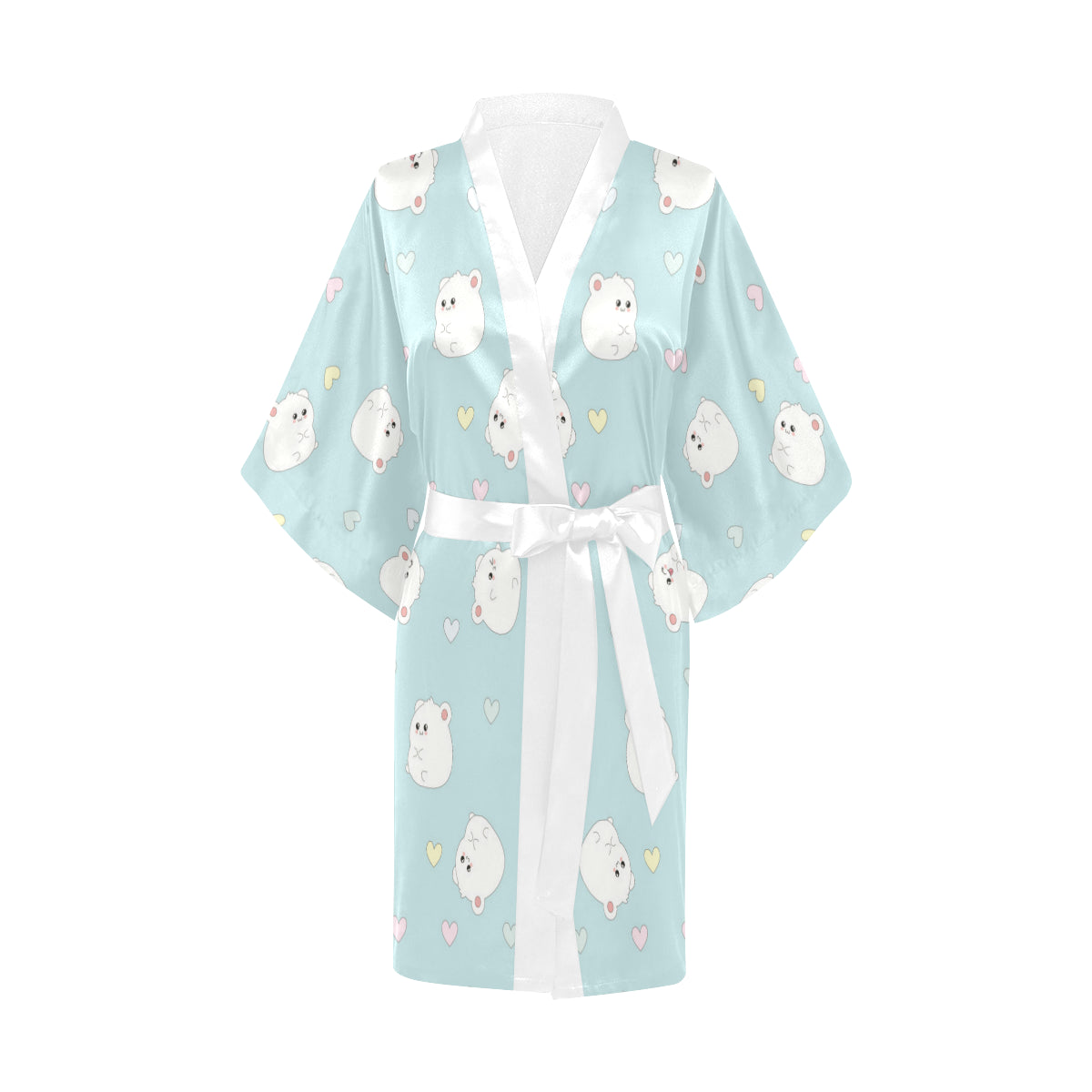 White cute hamsters heart pattern Women's Short Kimono Robe