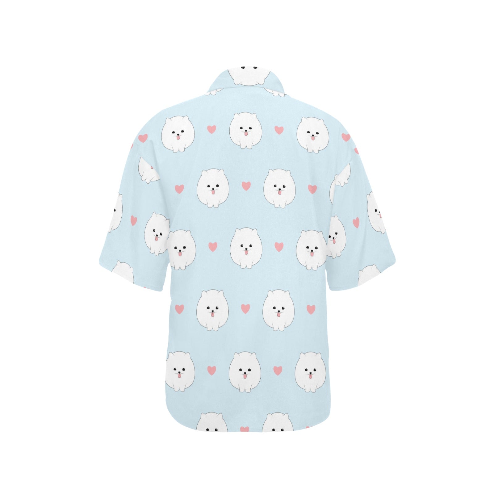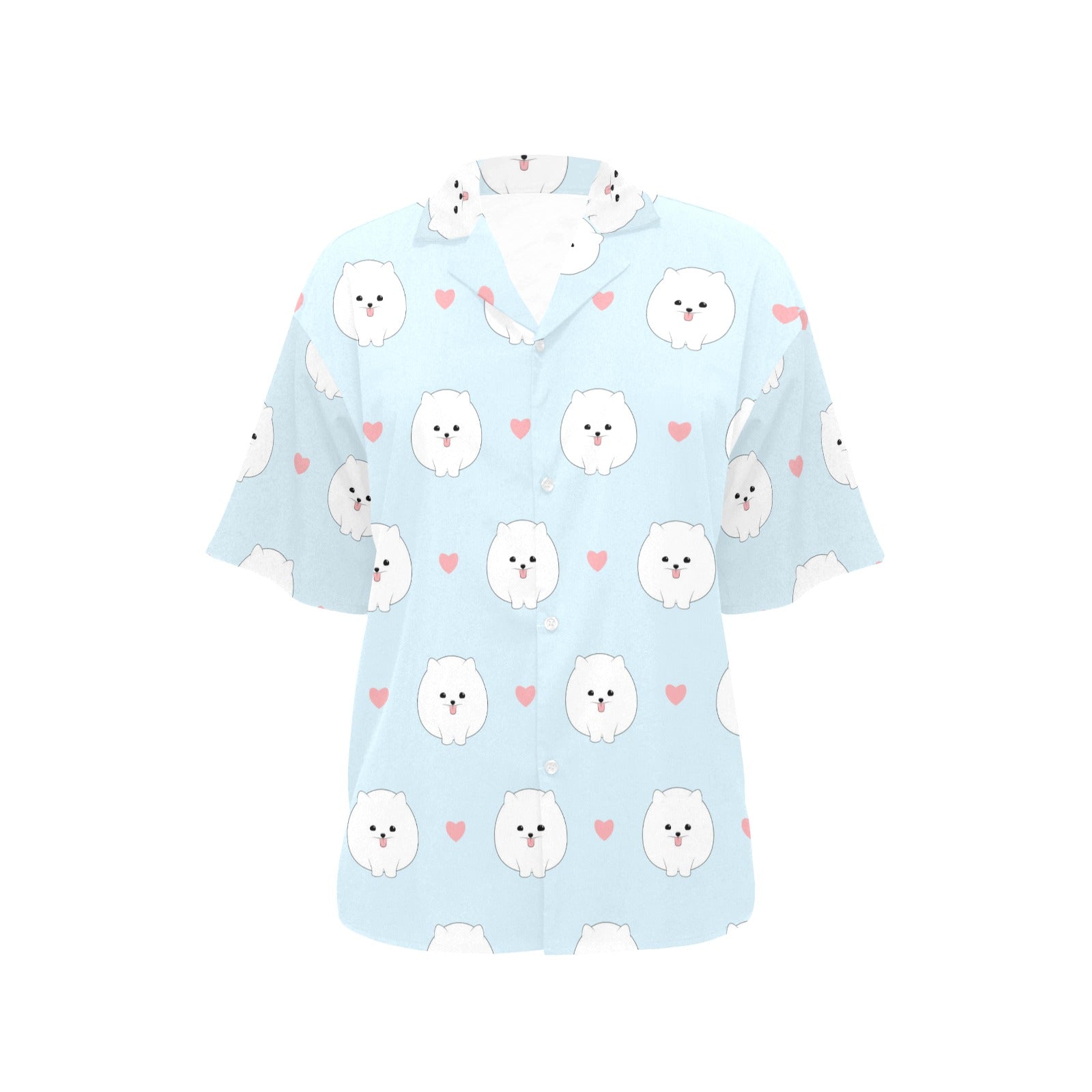 White cute pomeranian pattern Women's All Over Print Hawaiian Shirt