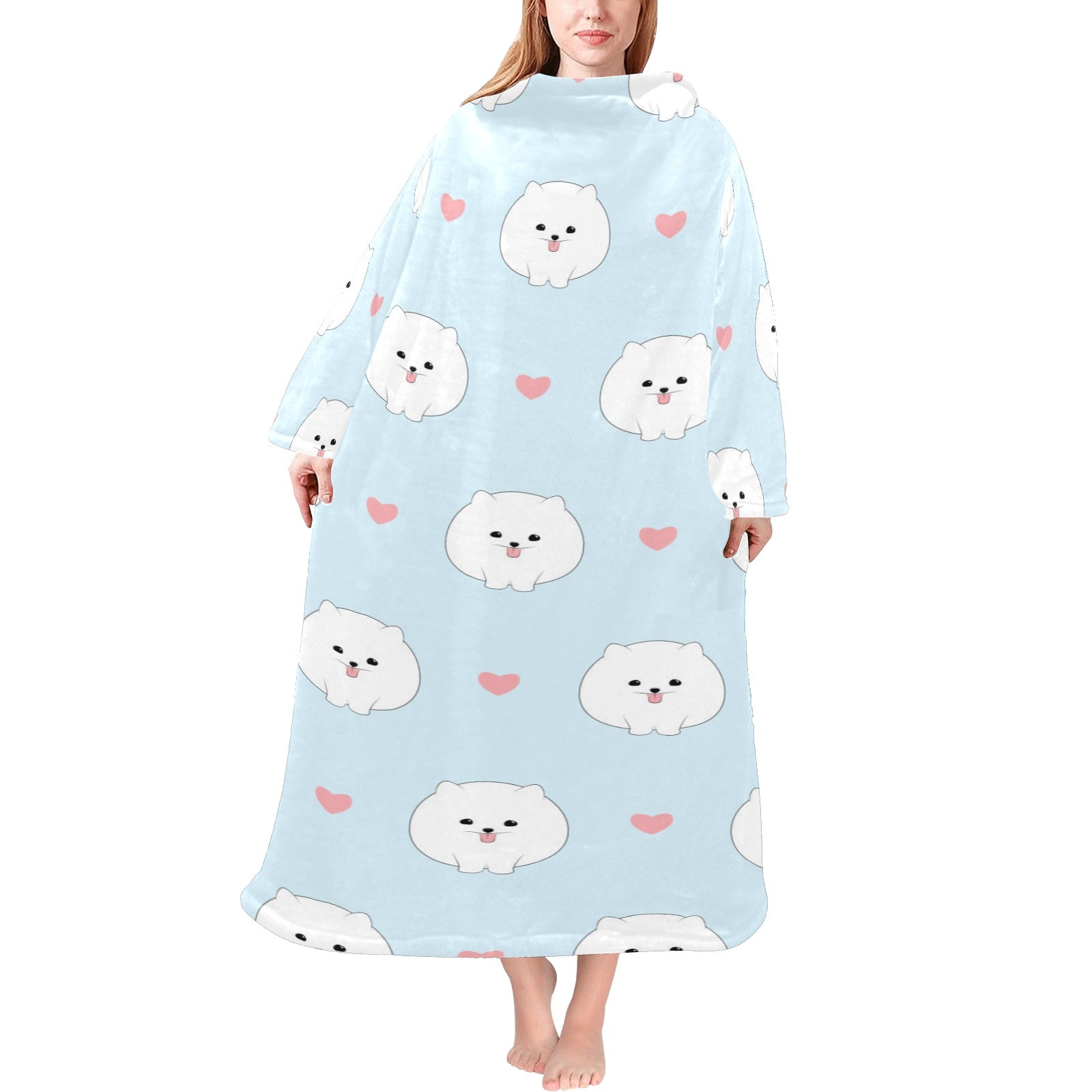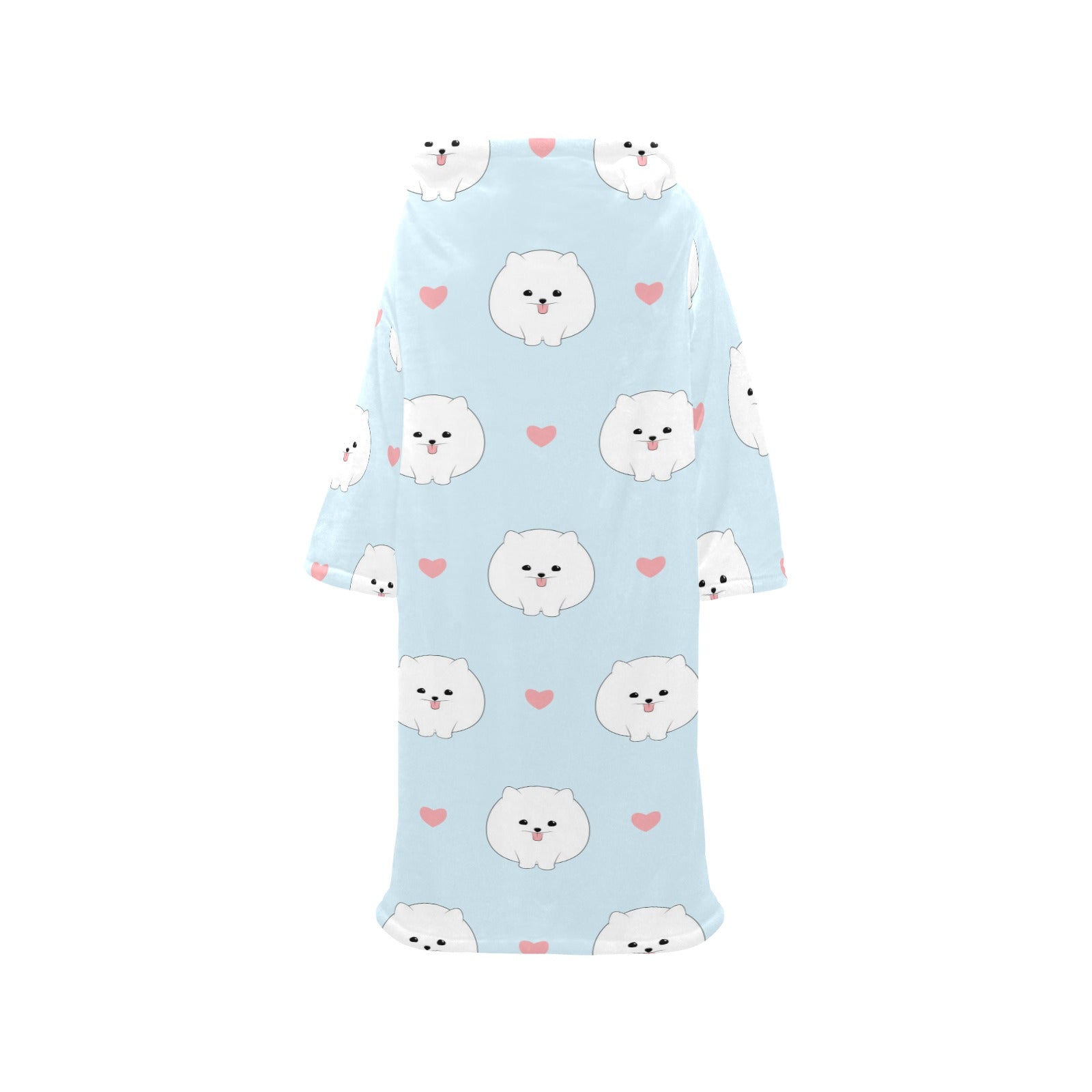 White cute pomeranian pattern Blanket Robe with Sleeves
