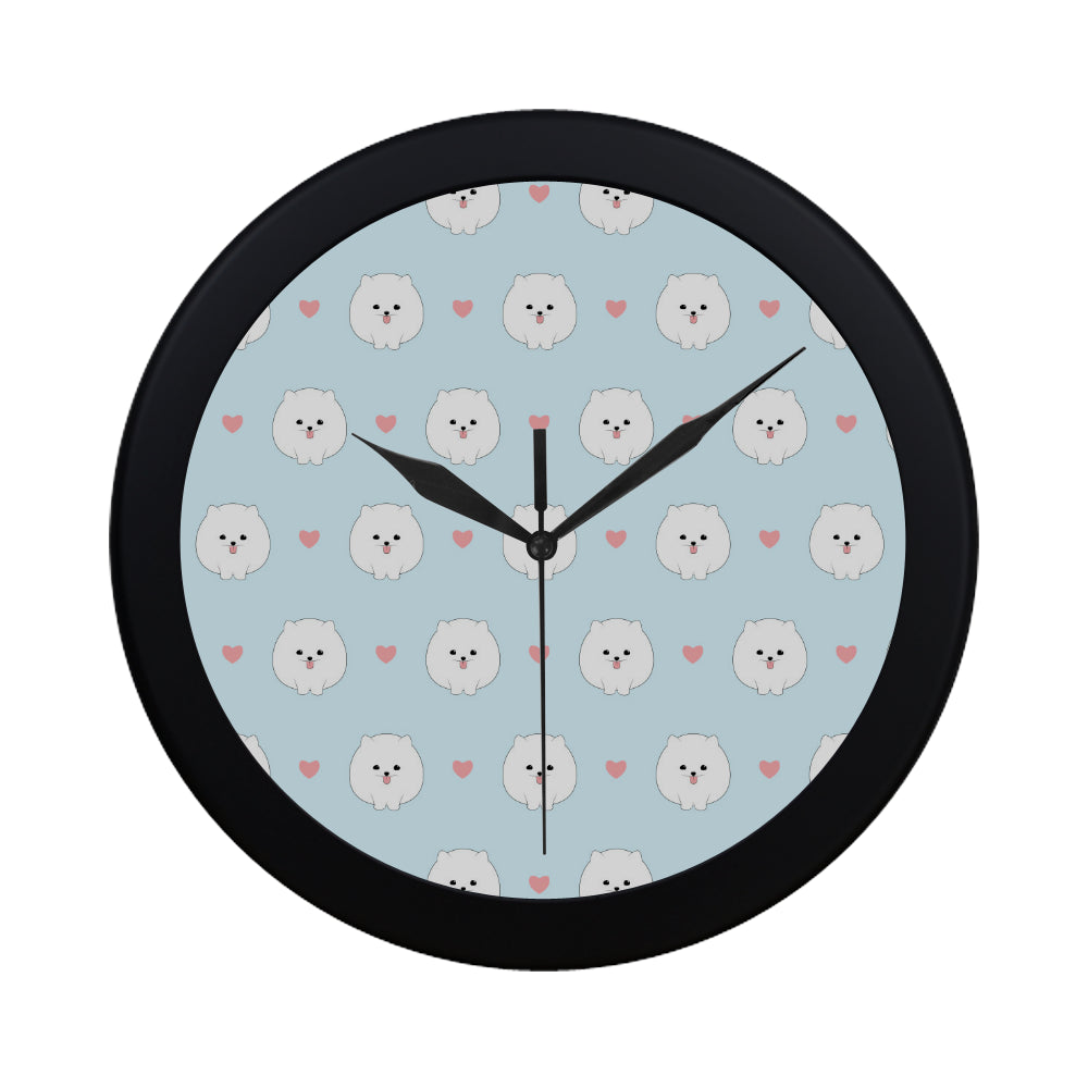 White cute pomeranian pattern Elegant Black Wall Clock is a uniqued design and limited item. It made to order, hand printed, and sewn with love in our factory.