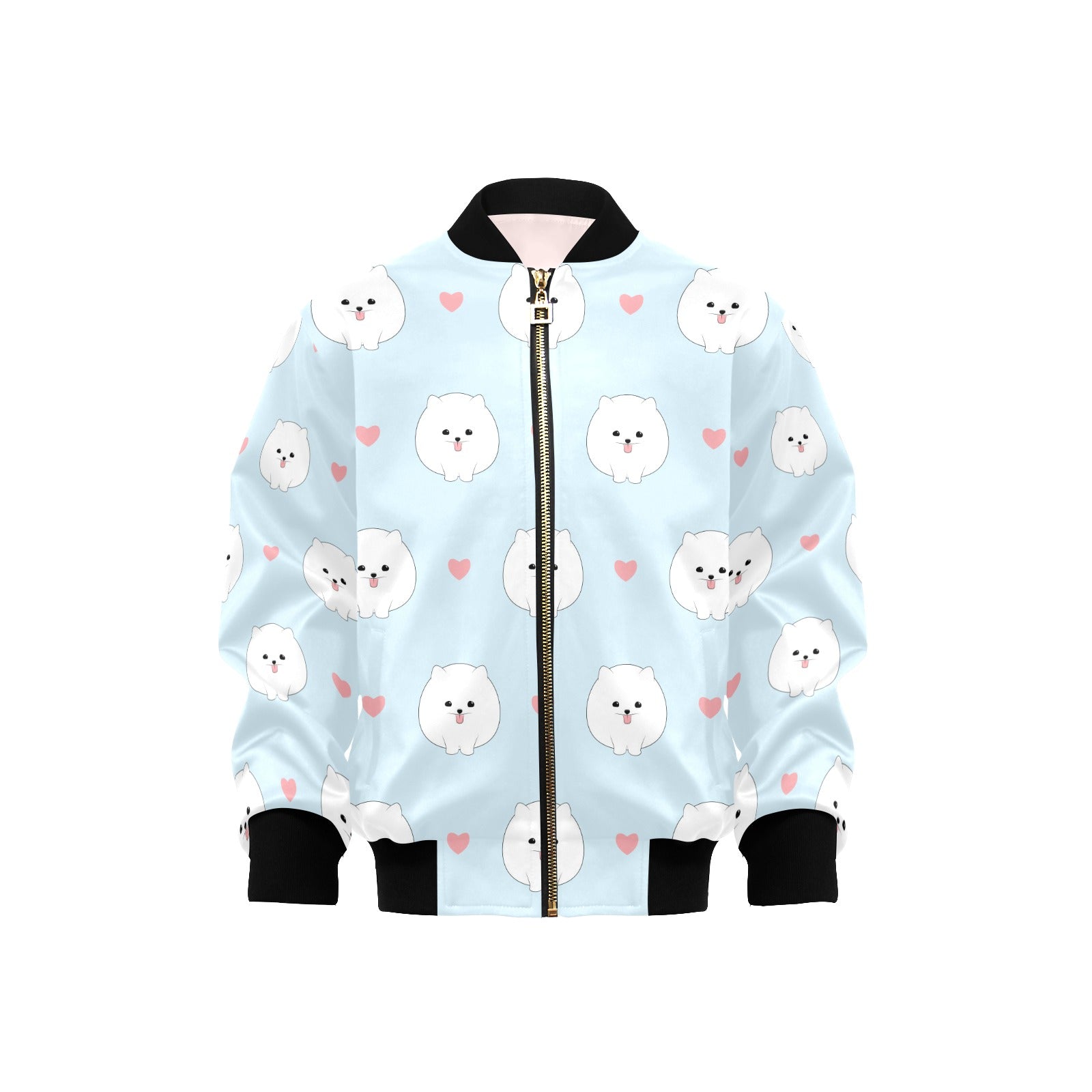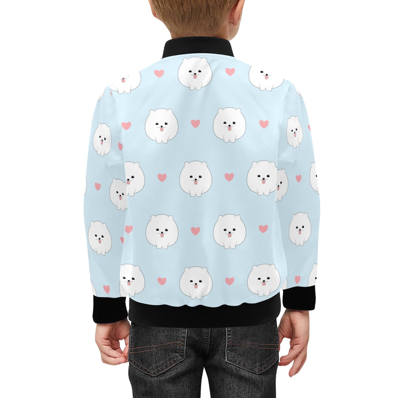 White cute pomeranian pattern Kids' Boys' Girls' Bomber Jacket