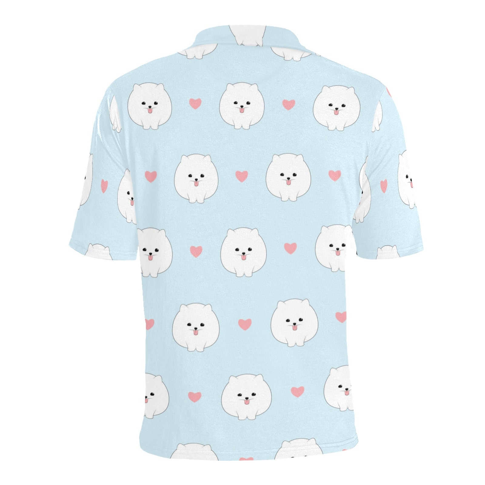 White cute pomeranian pattern Men's All Over Print Polo Shirt