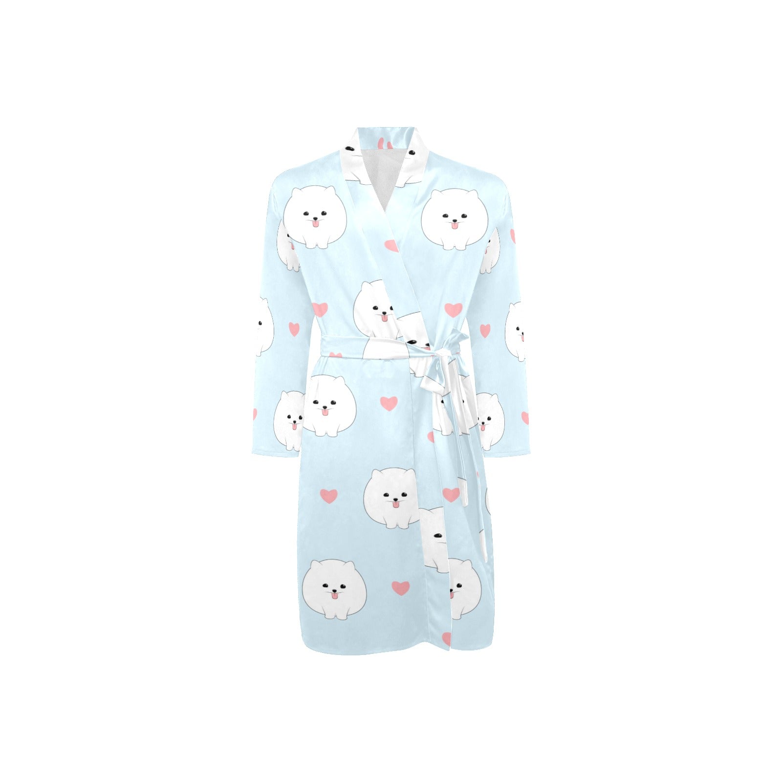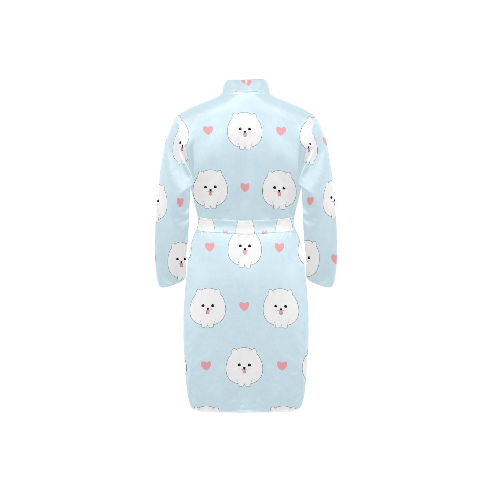 White cute pomeranian pattern Men's Long Sleeve Belted Night Robe