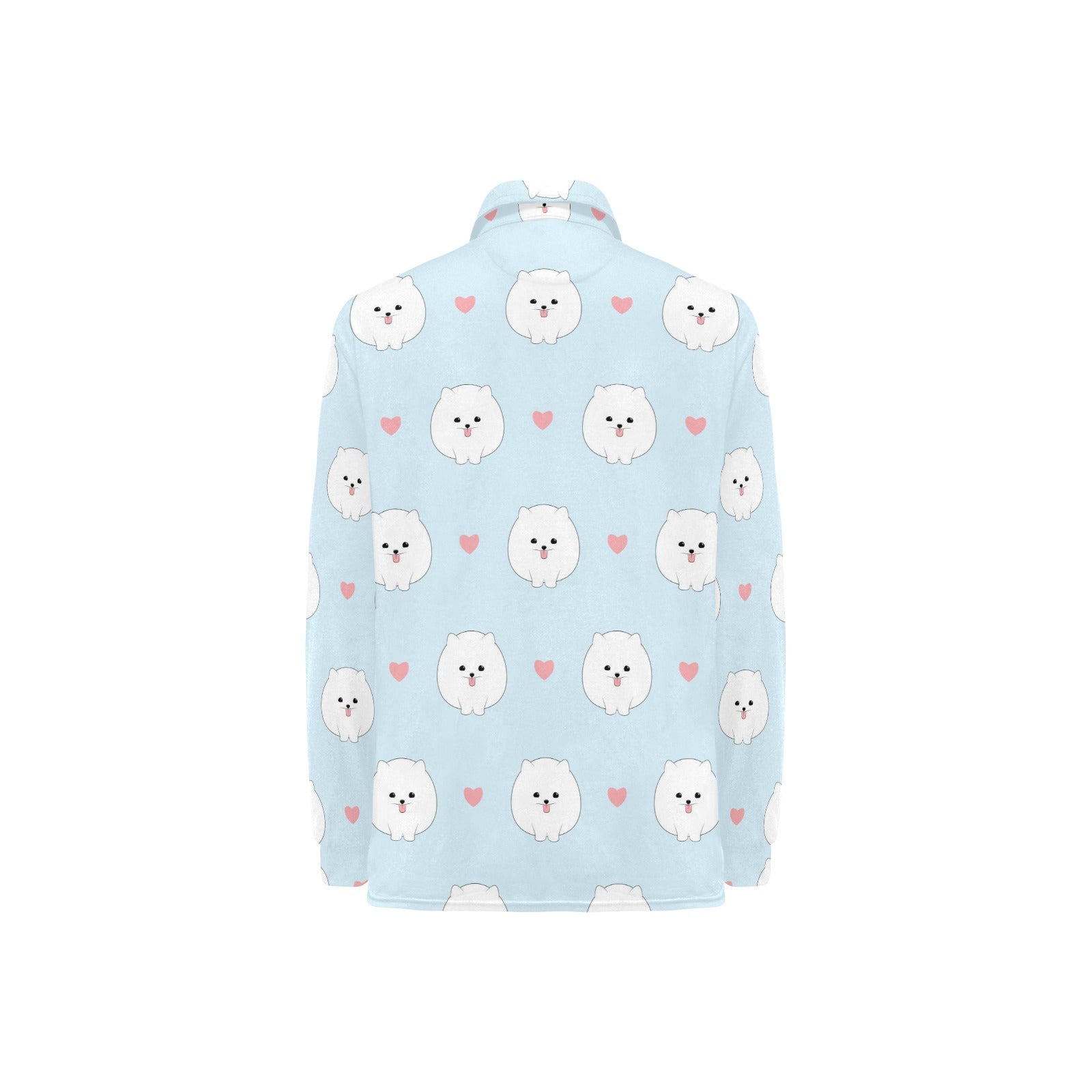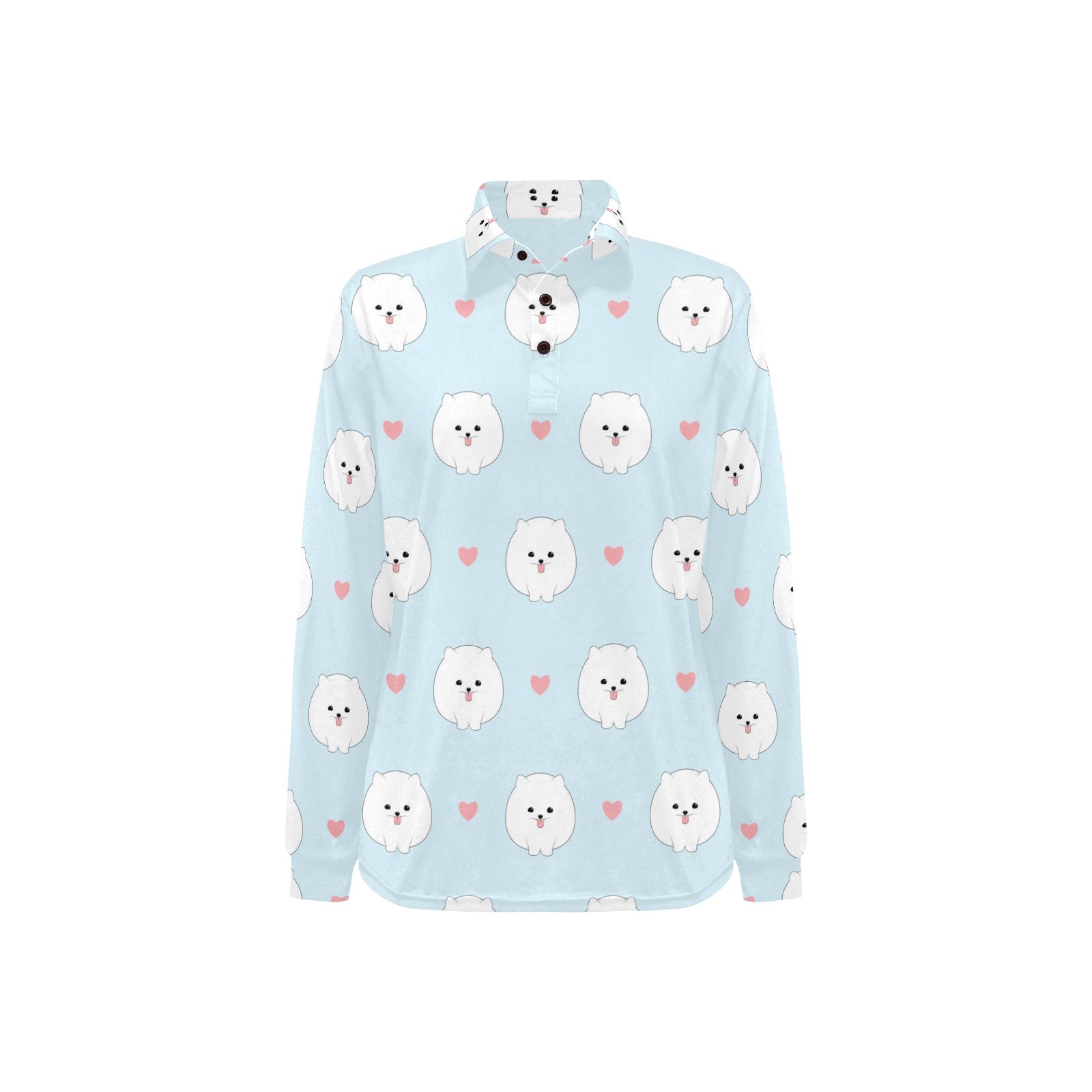 White cute pomeranian pattern Women's Long Sleeve Polo Shirt