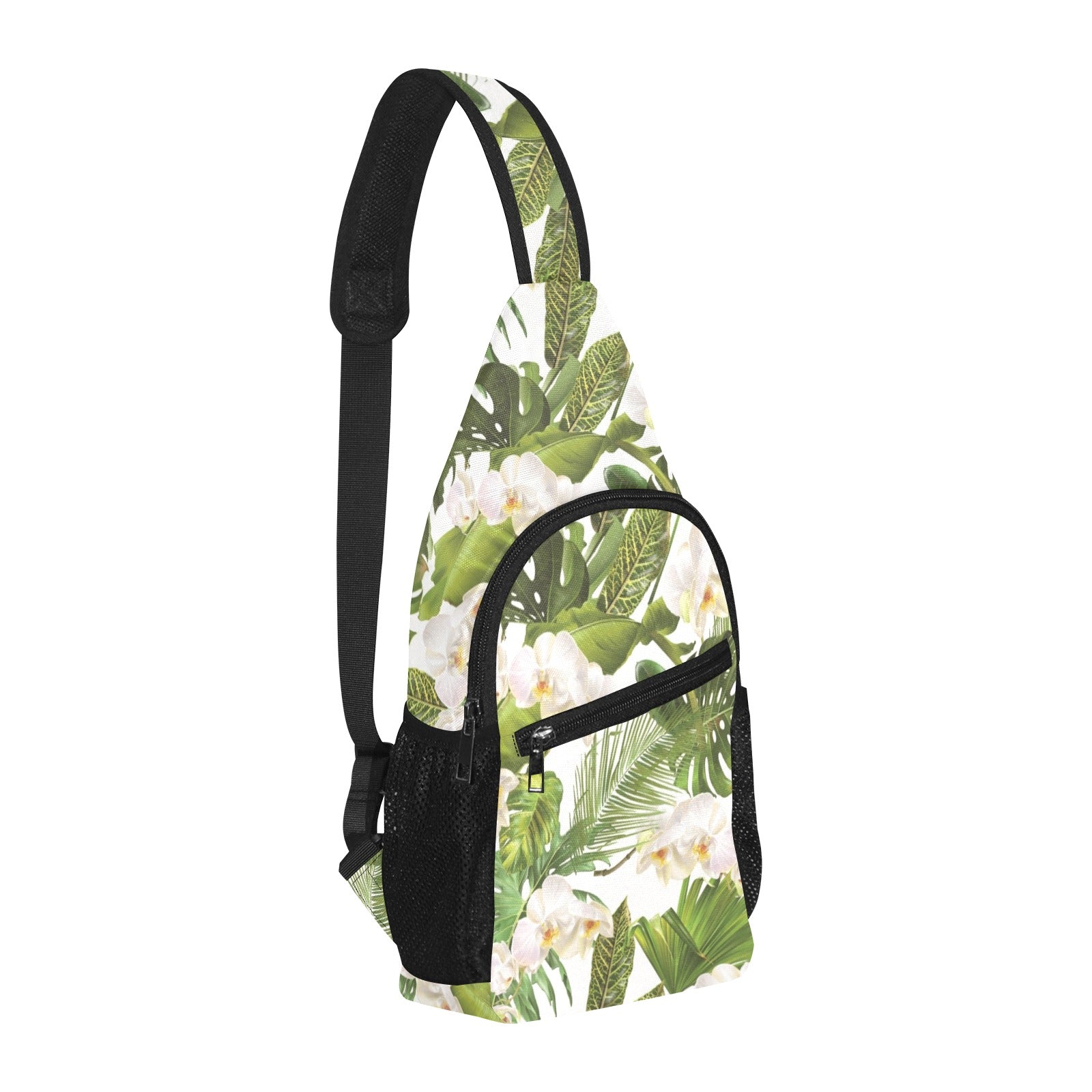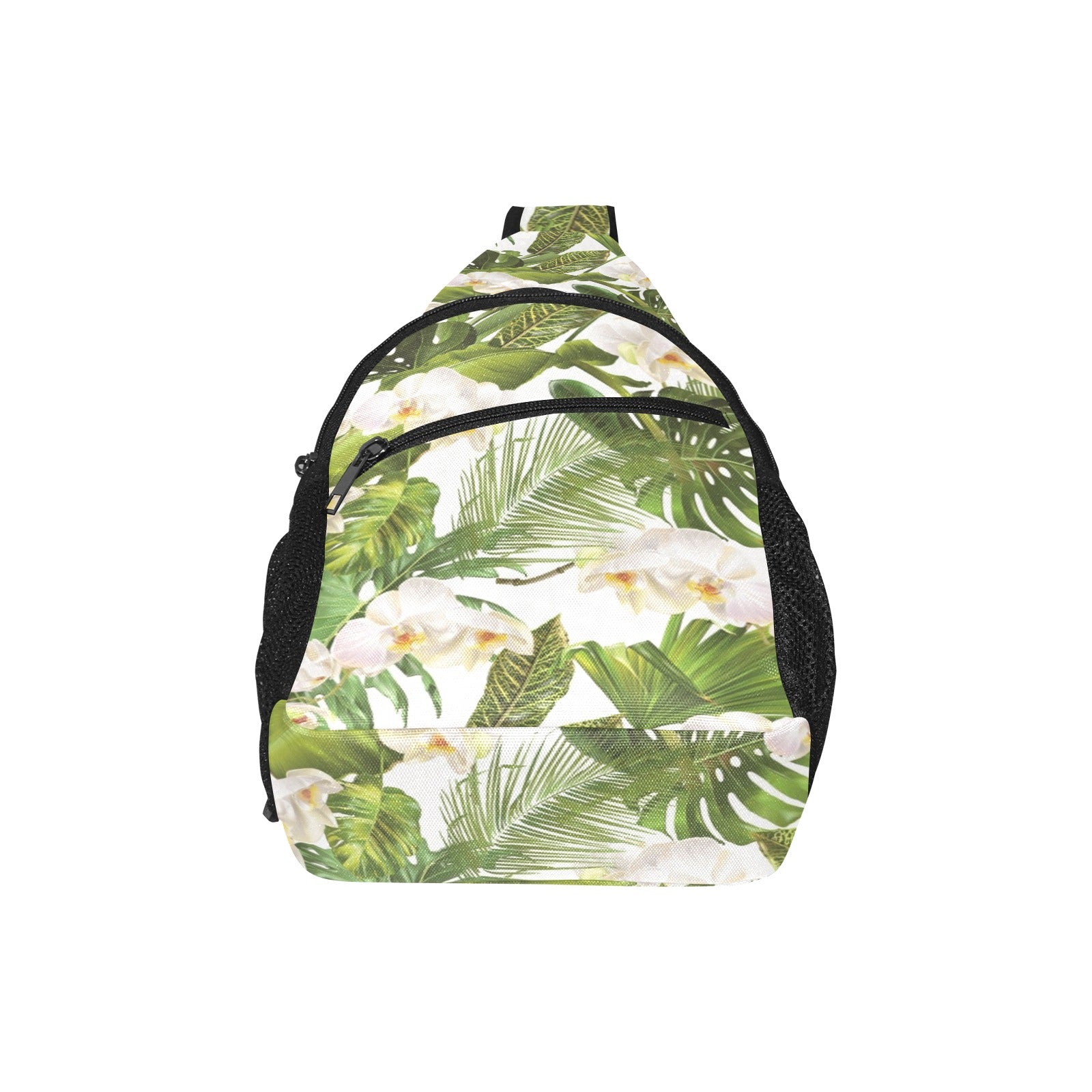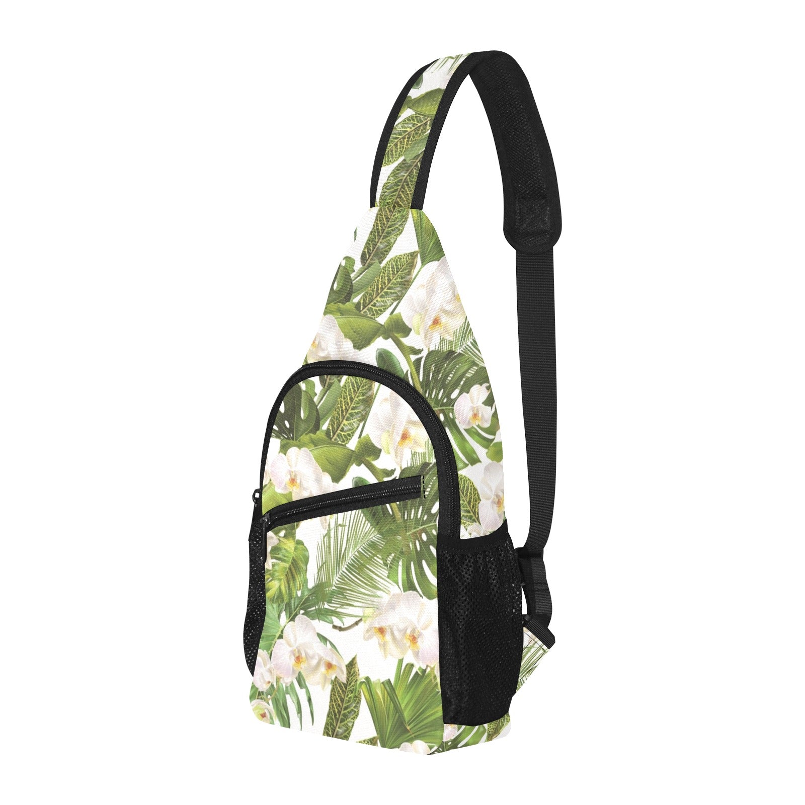 White orchid flower tropical leaves pattern All Over Print Chest Bag