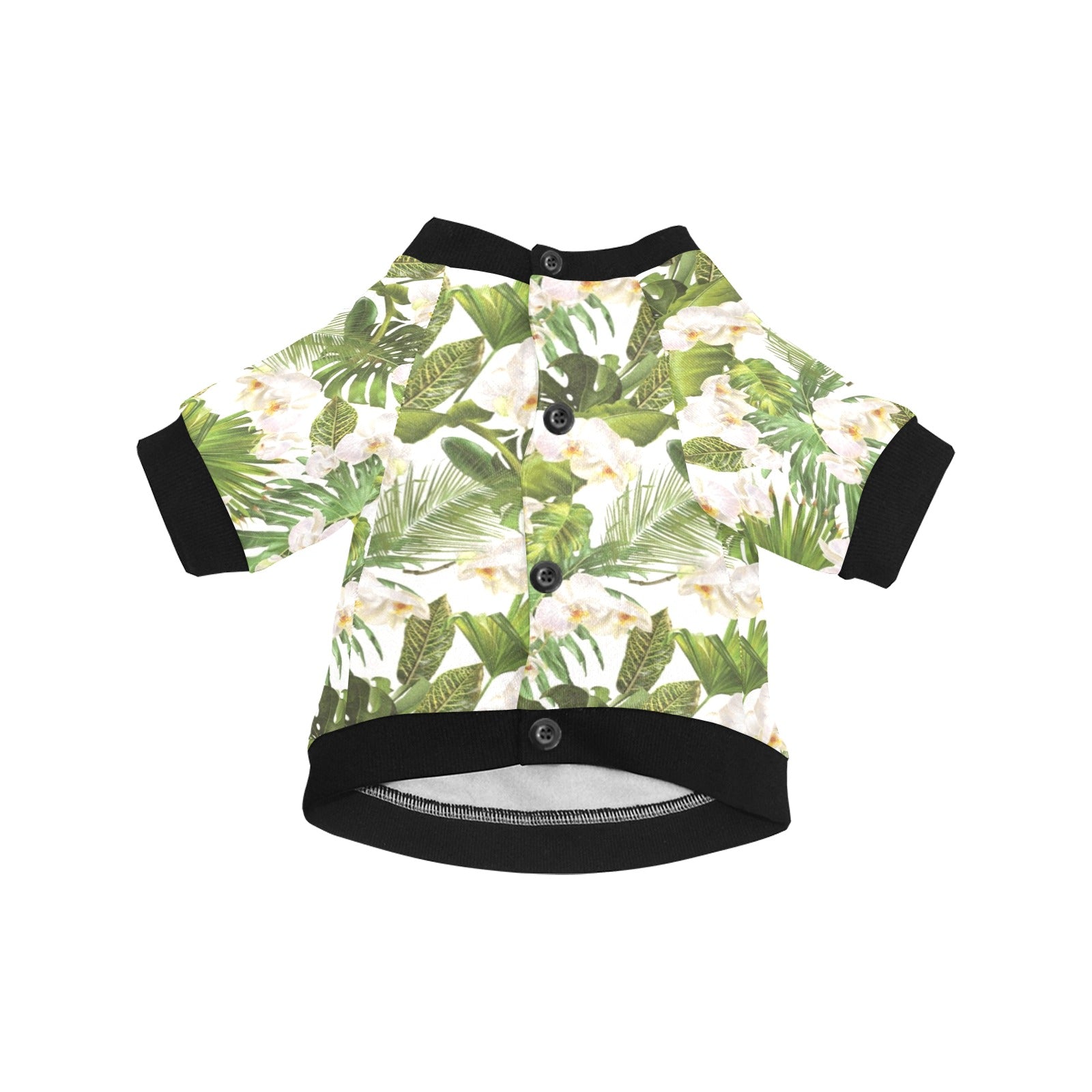 White orchid flower tropical leaves pattern All Over Print Pet Dog Round Neck Fuzzy Shirt
