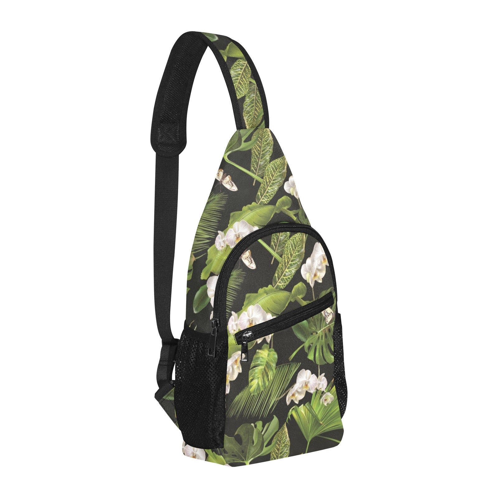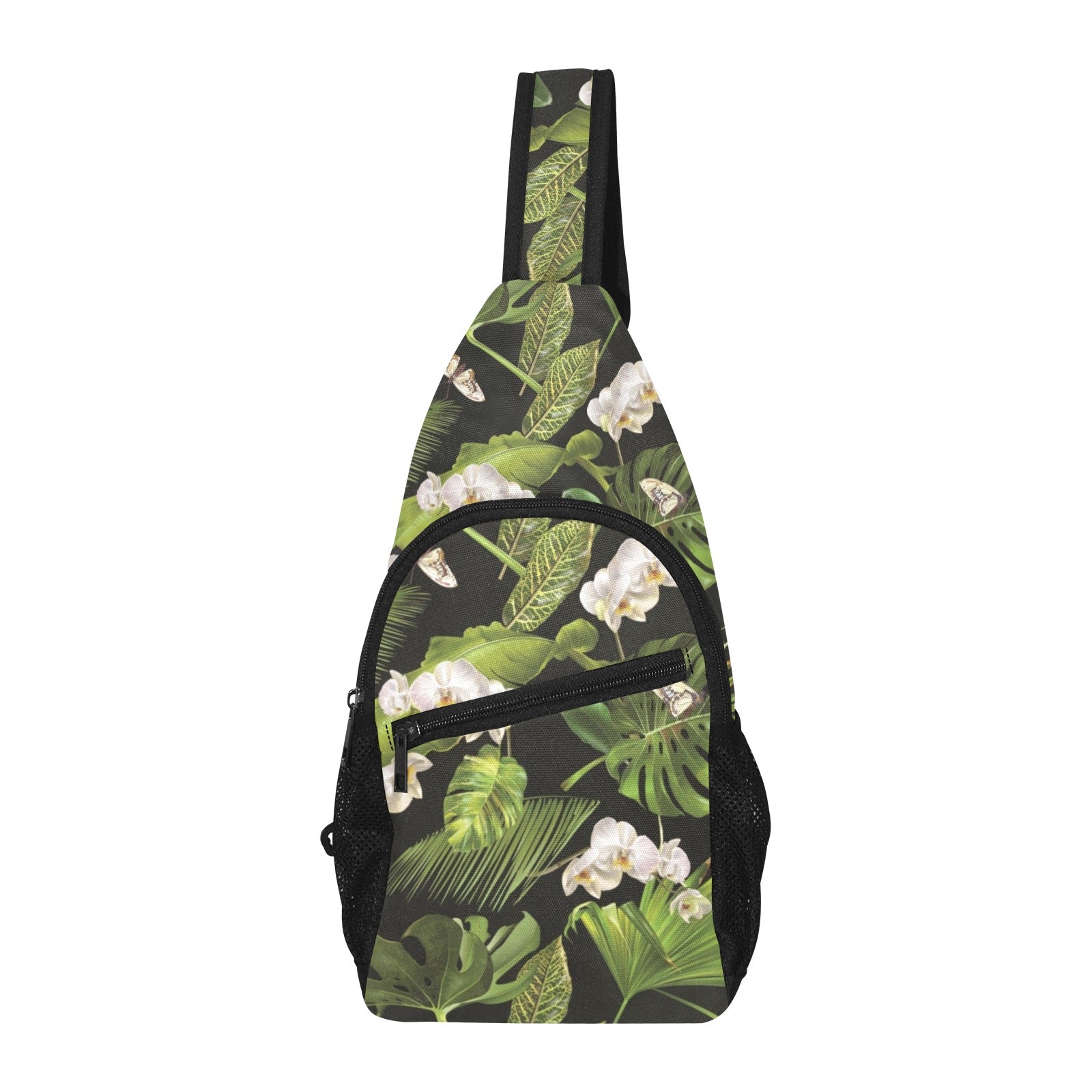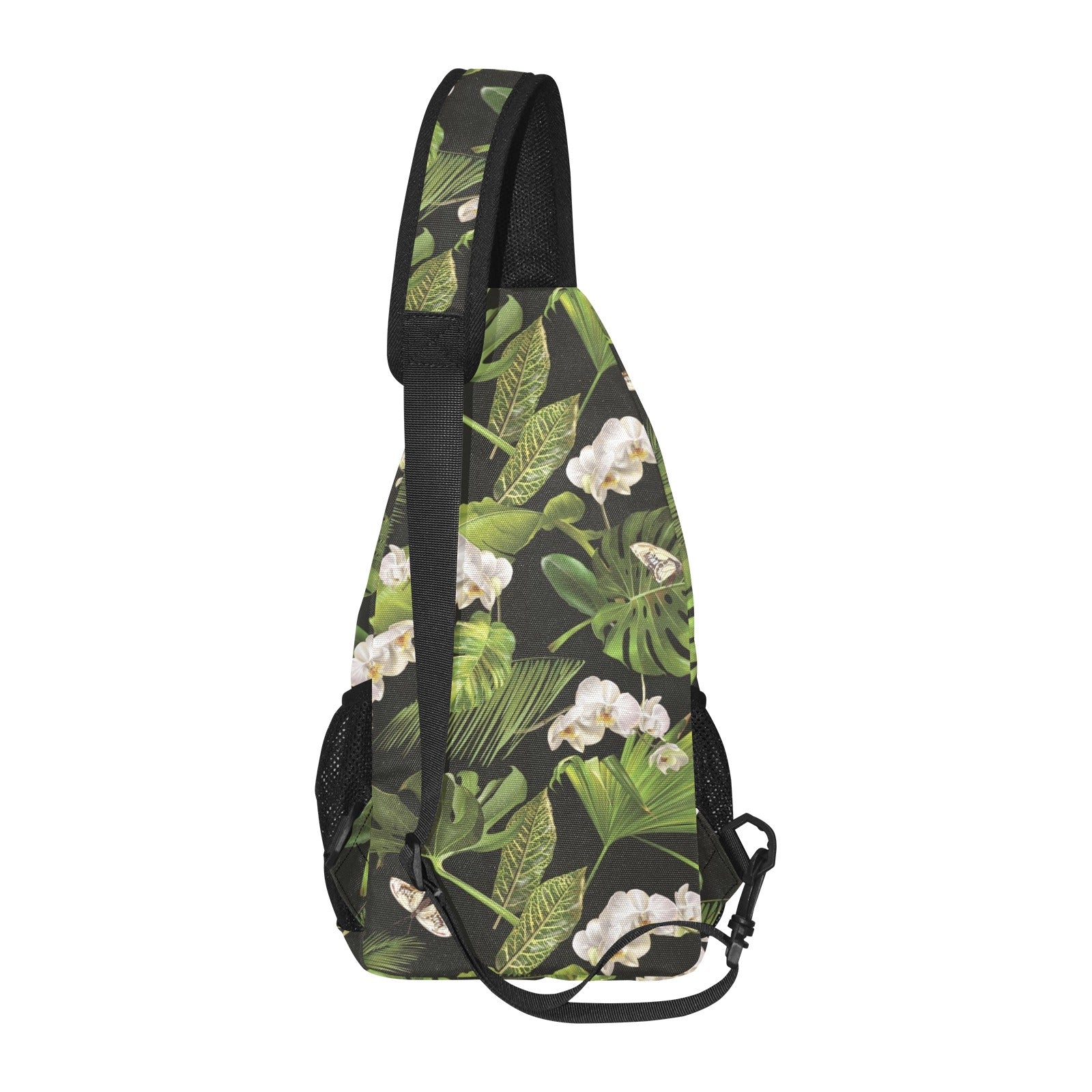 White orchid flower tropical leaves pattern blackg All Over Print Chest Bag