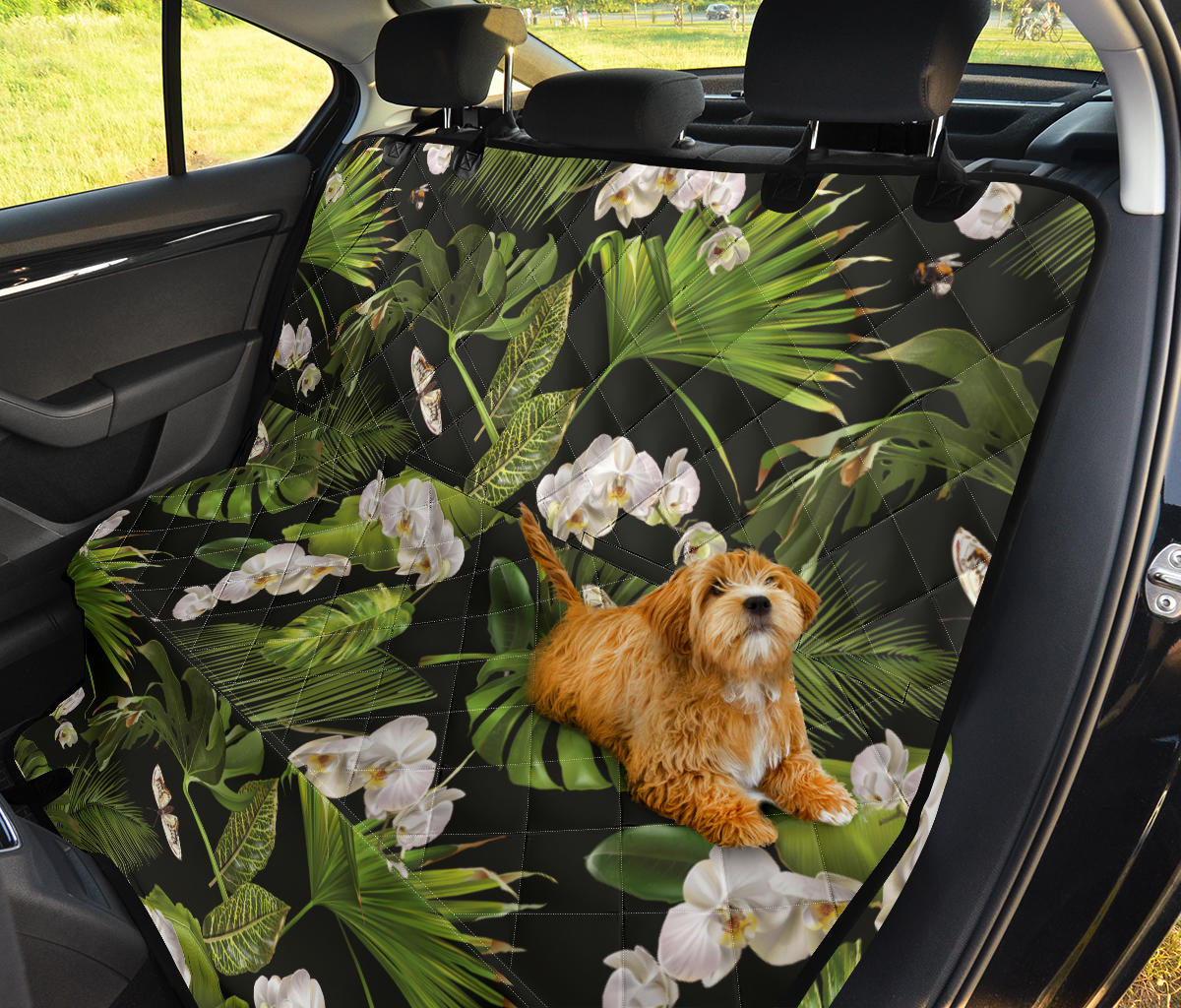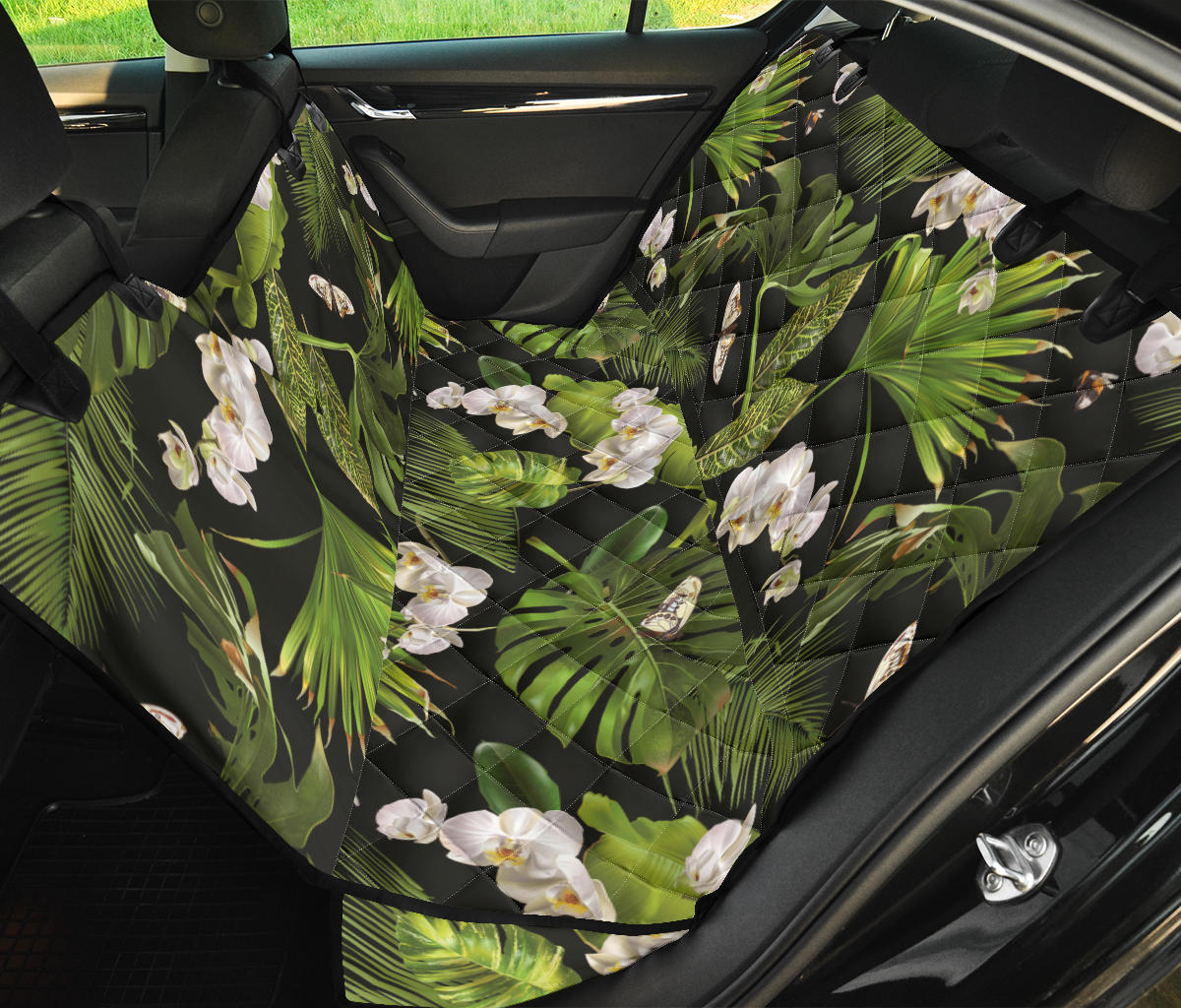 White orchid flower tropical leaves pattern blackground Dog Car Seat Covers is a uniqued design and limited item. It made to order, hand printed, and sewn with love in our factory.