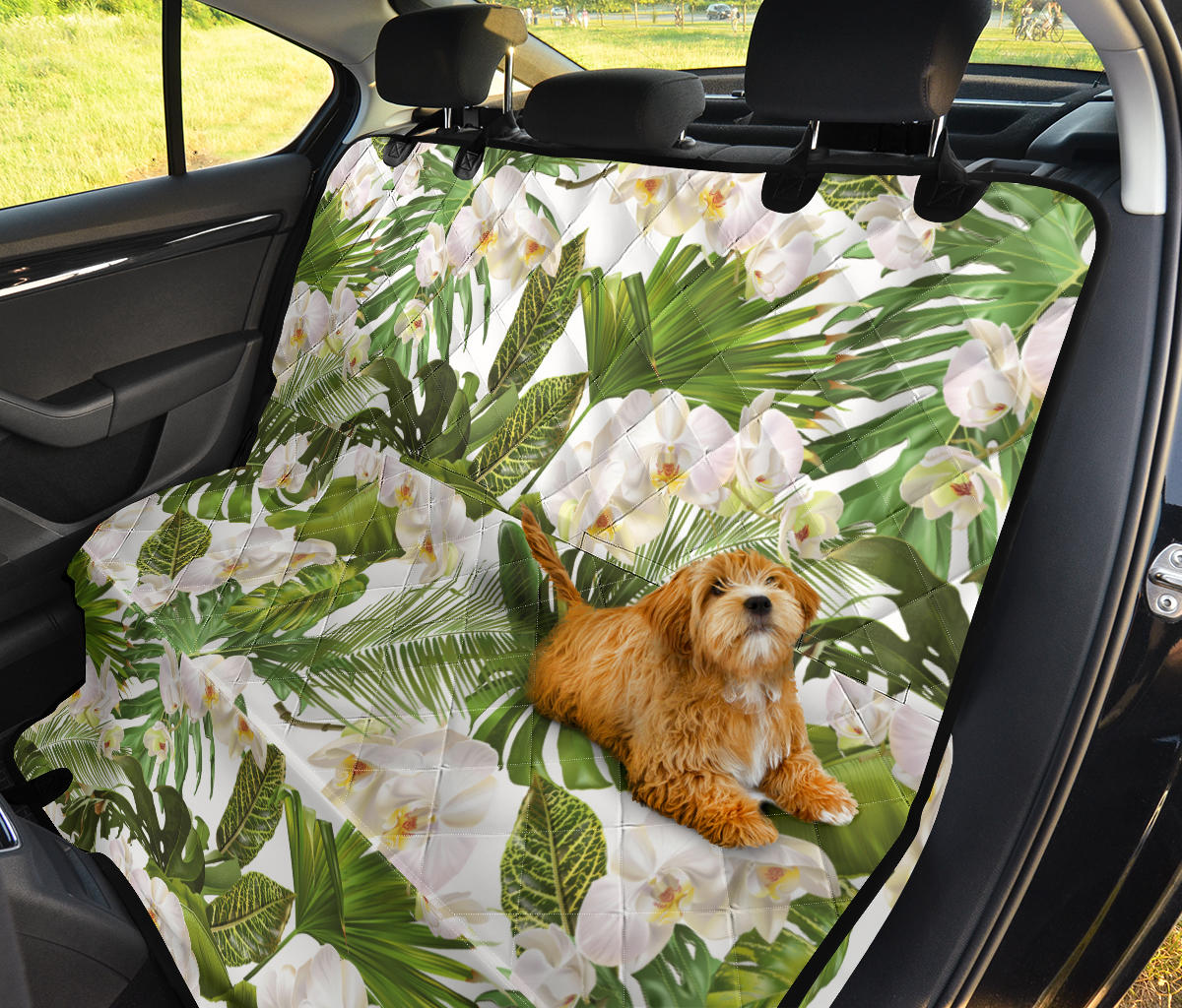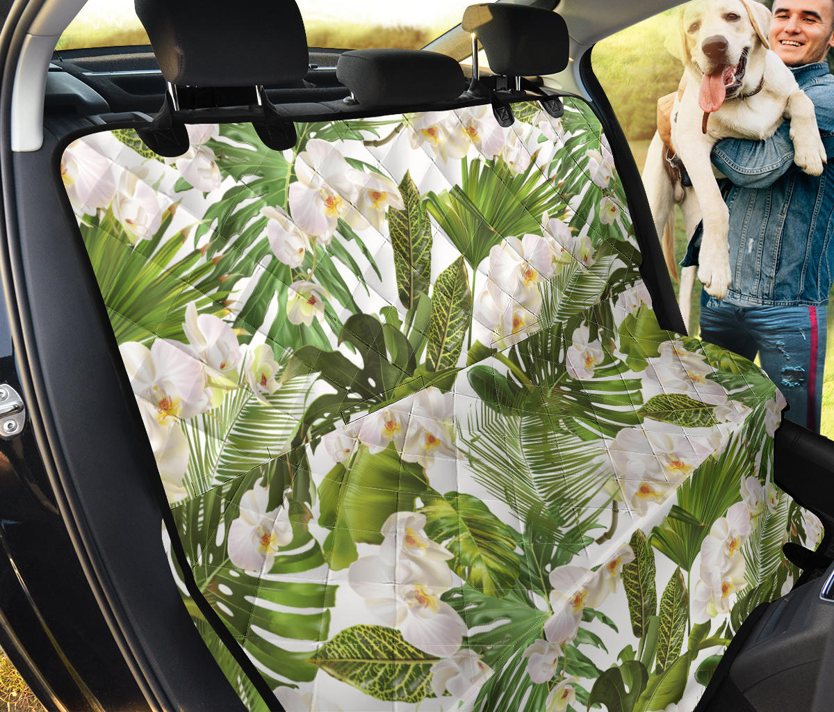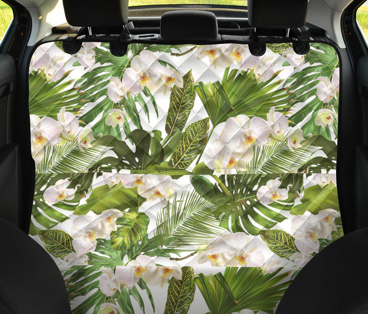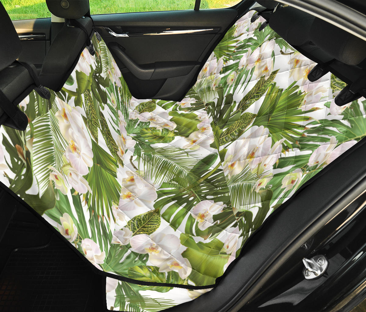 White orchid flower tropical leaves pattern Dog Car Seat Covers is a uniqued design and limited item. It made to order, hand printed, and sewn with love in our factory.