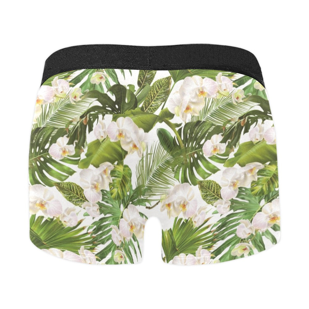 White orchid flower tropical leaves pattern Men's All Over Print Boxer Briefs Men's Underwear