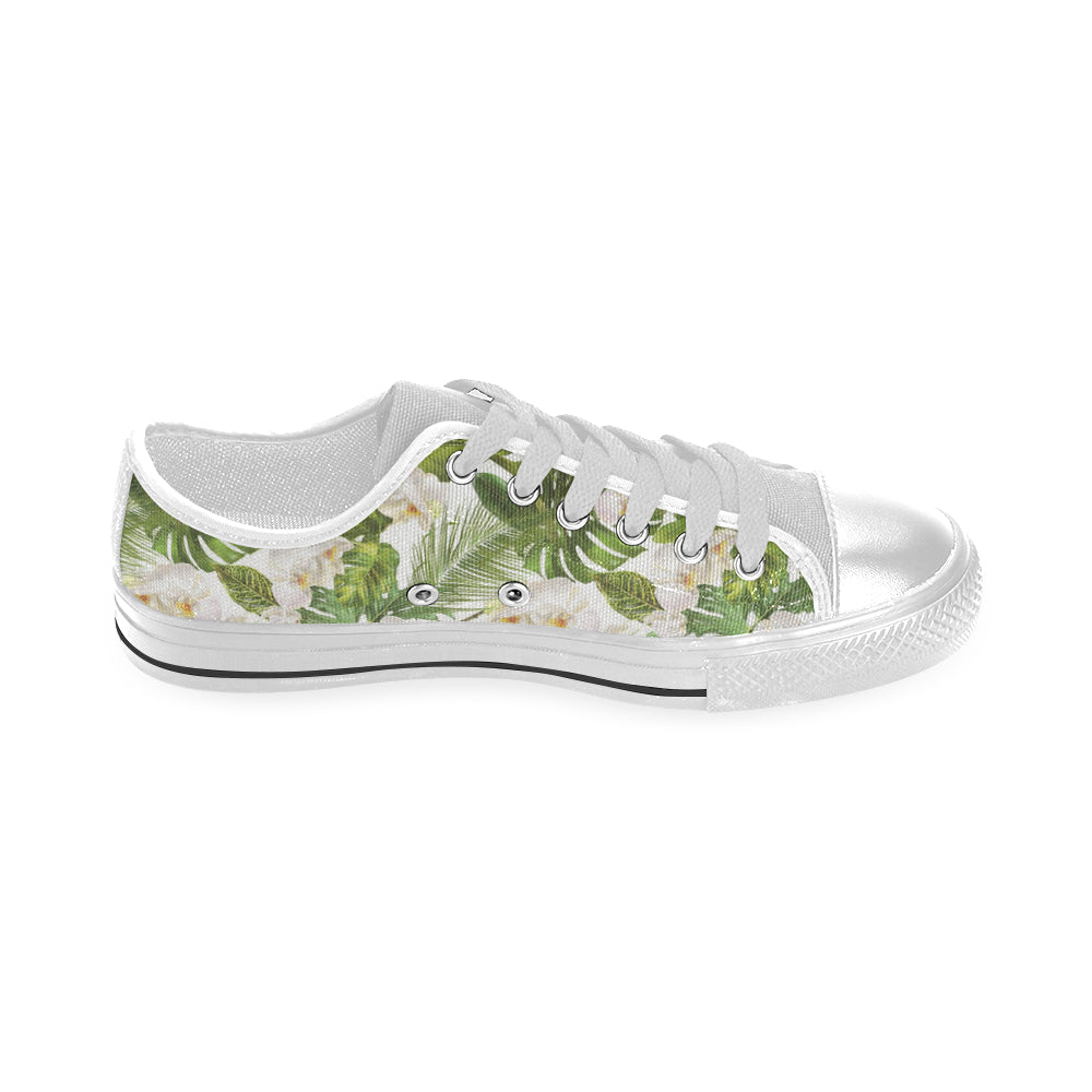 White orchid flower tropical leaves pattern Men's Low Top Canvas Shoes White