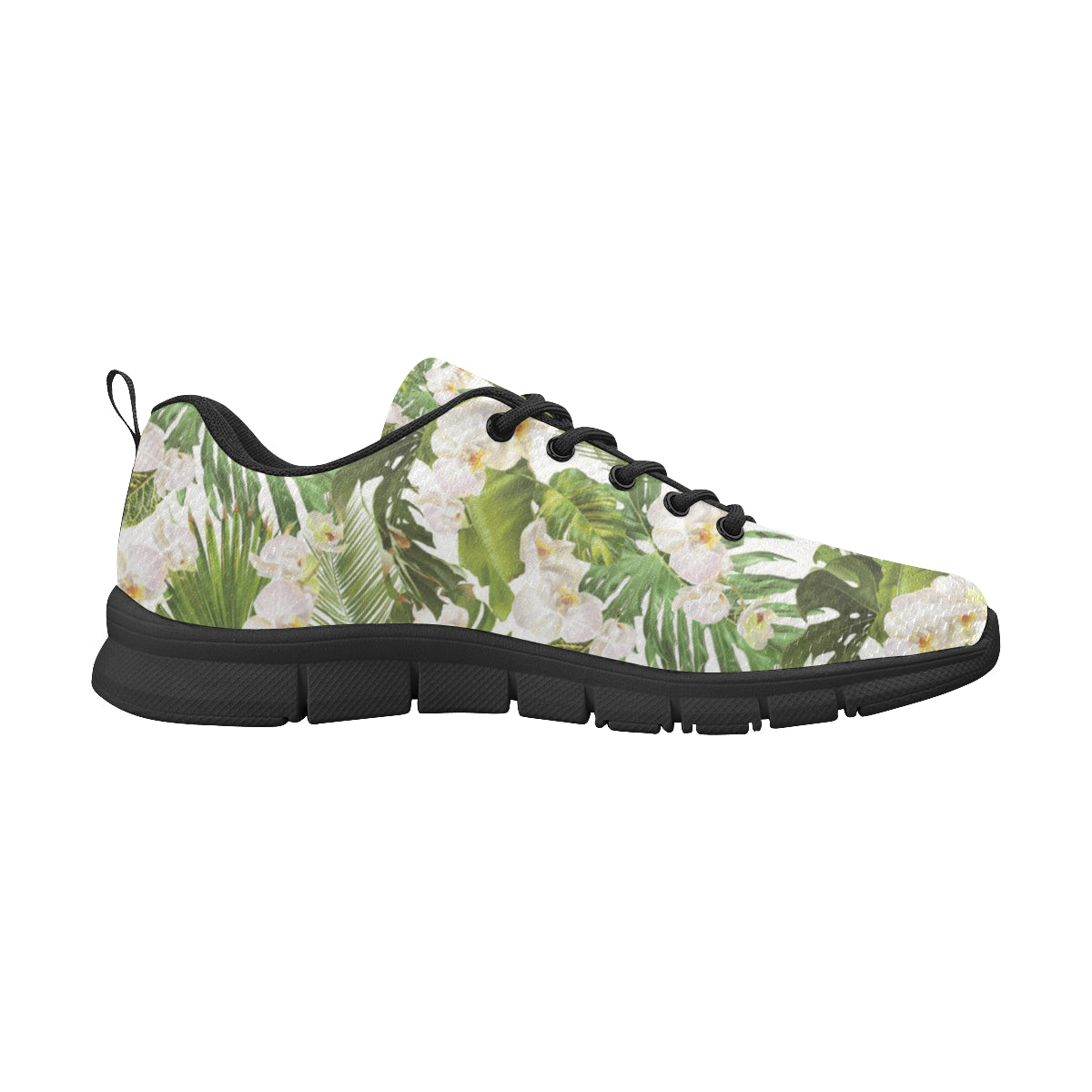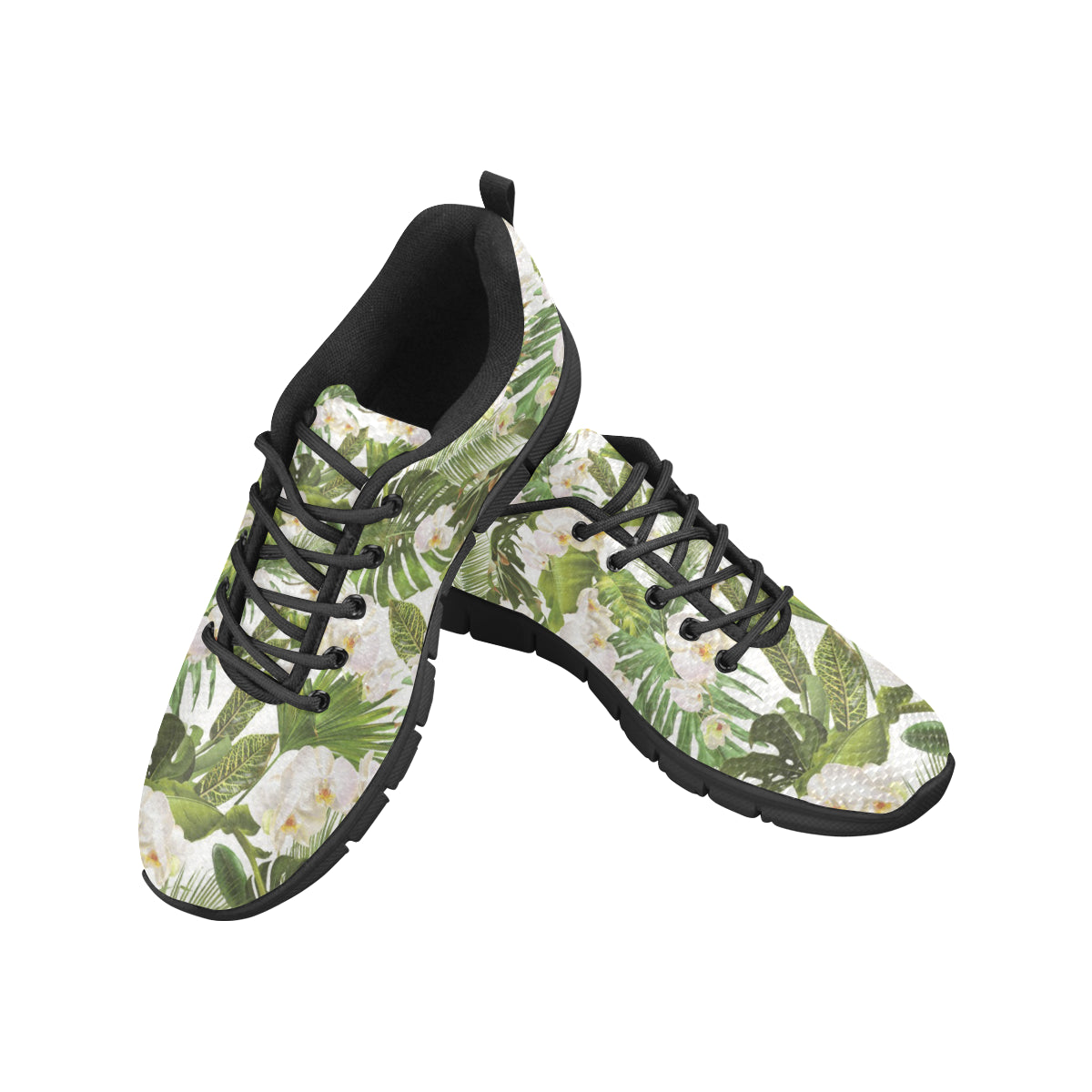 White orchid flower tropical leaves pattern Men's Sneaker Shoes are uniqued design and limited item. It made to order, hand printed, and sewn with love in our factory.