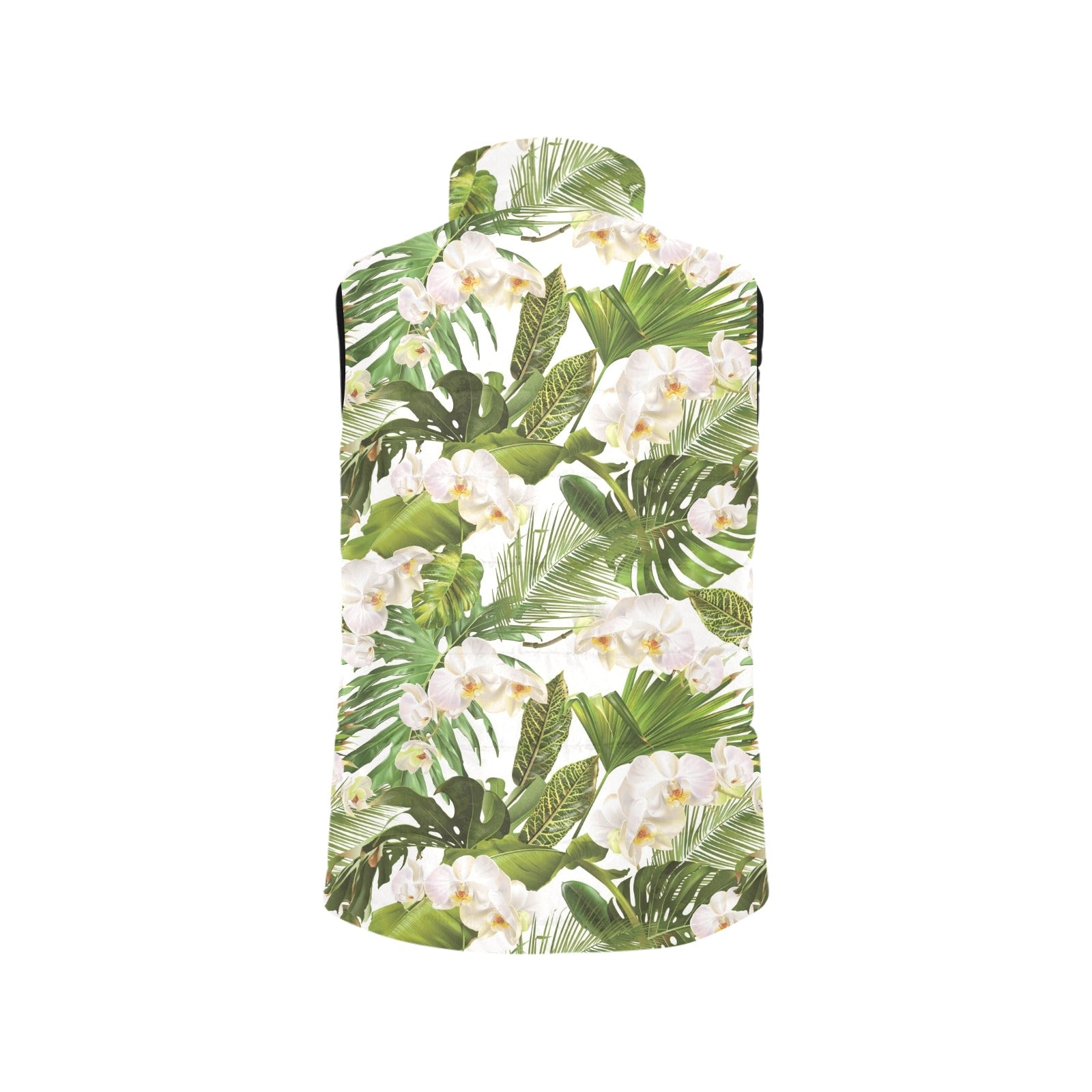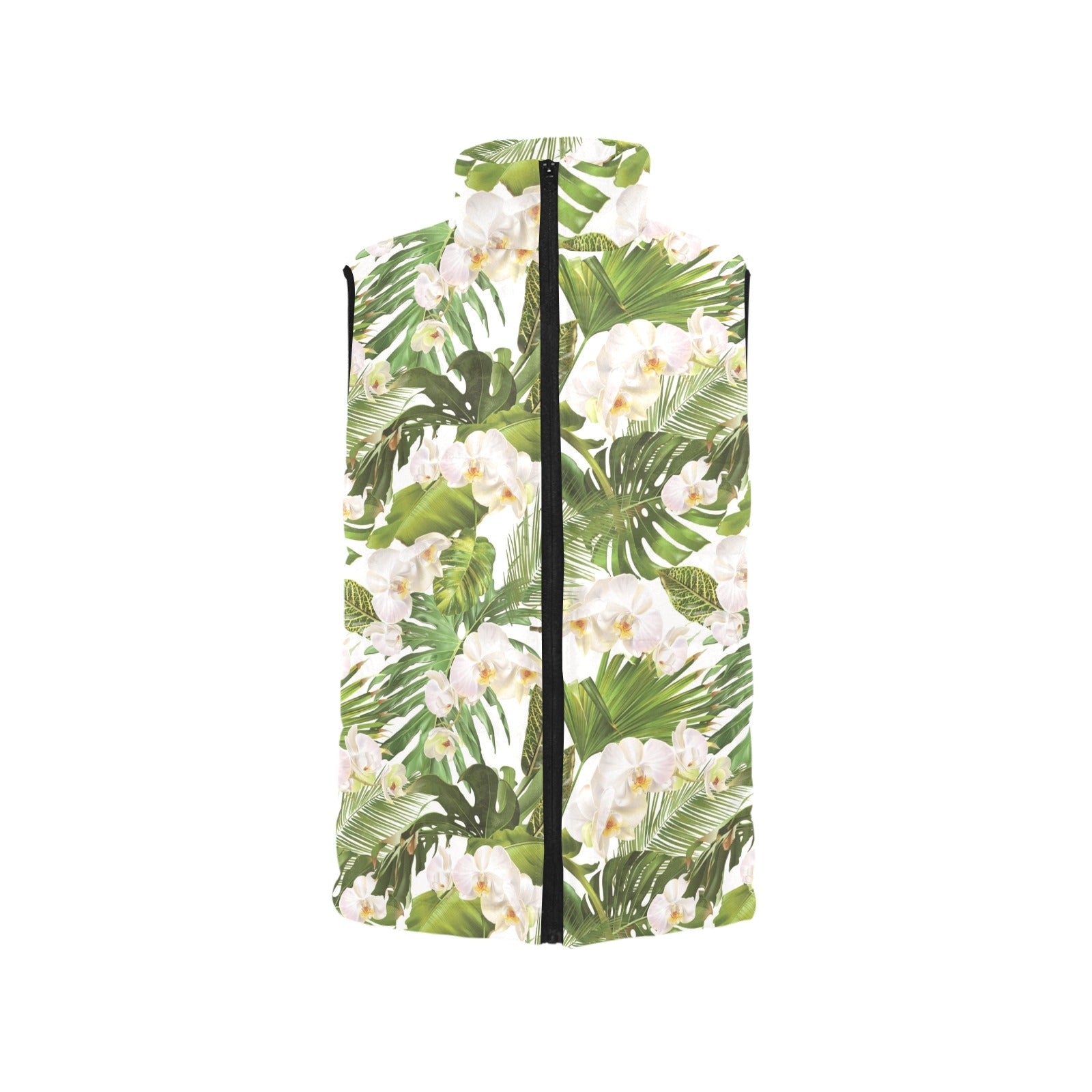 White orchid flower tropical leaves pattern Men's Padded Vest
