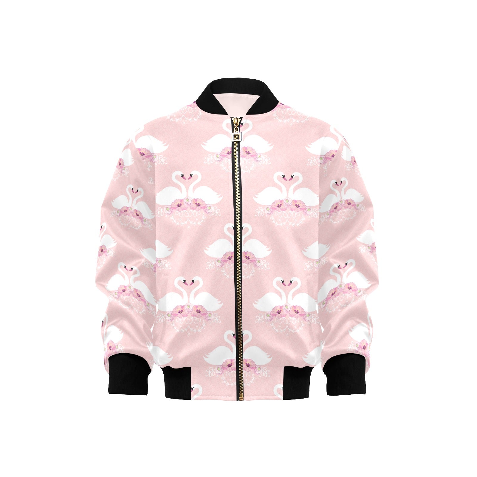 White swan and flower love pattern Kids' Boys' Girls' Bomber Jacket