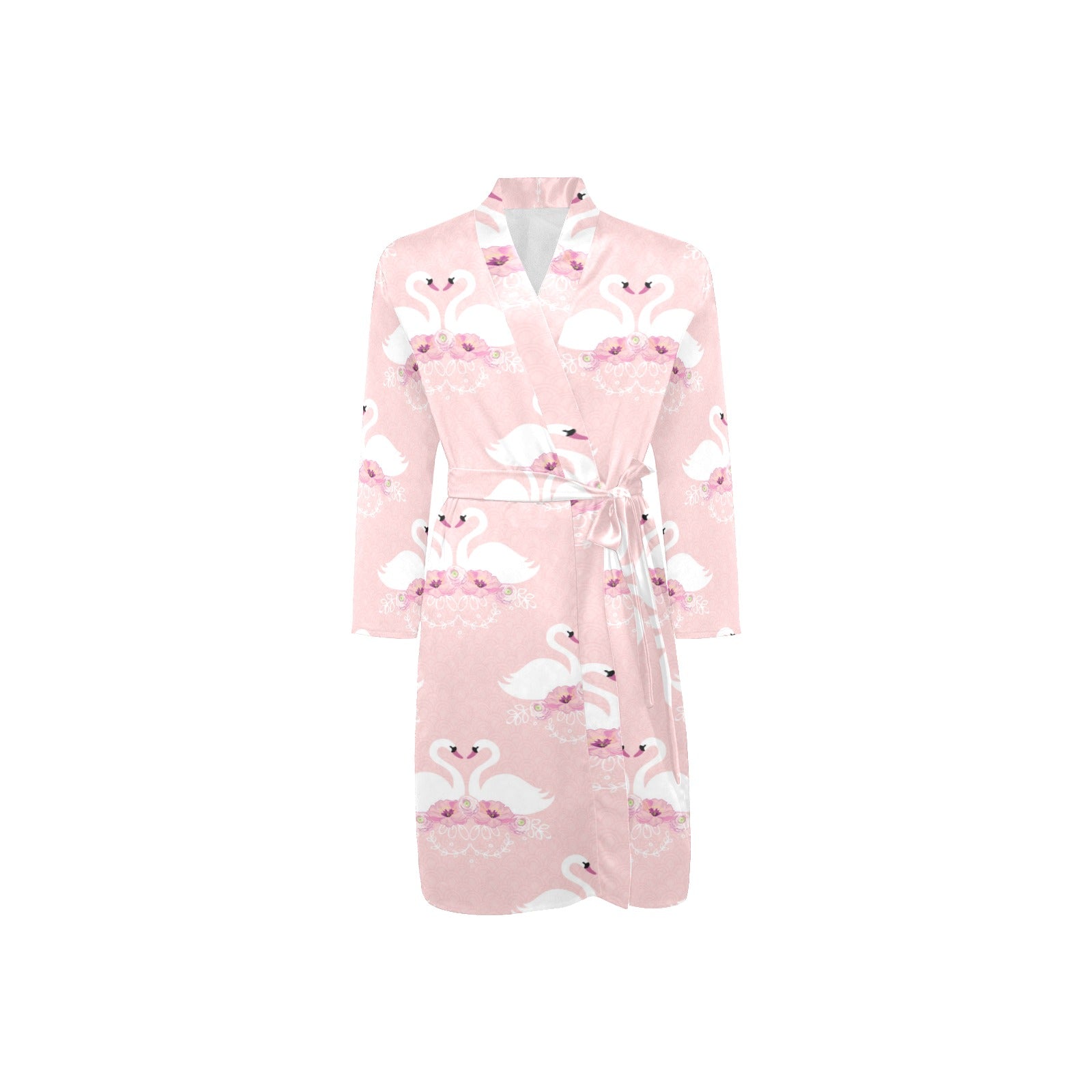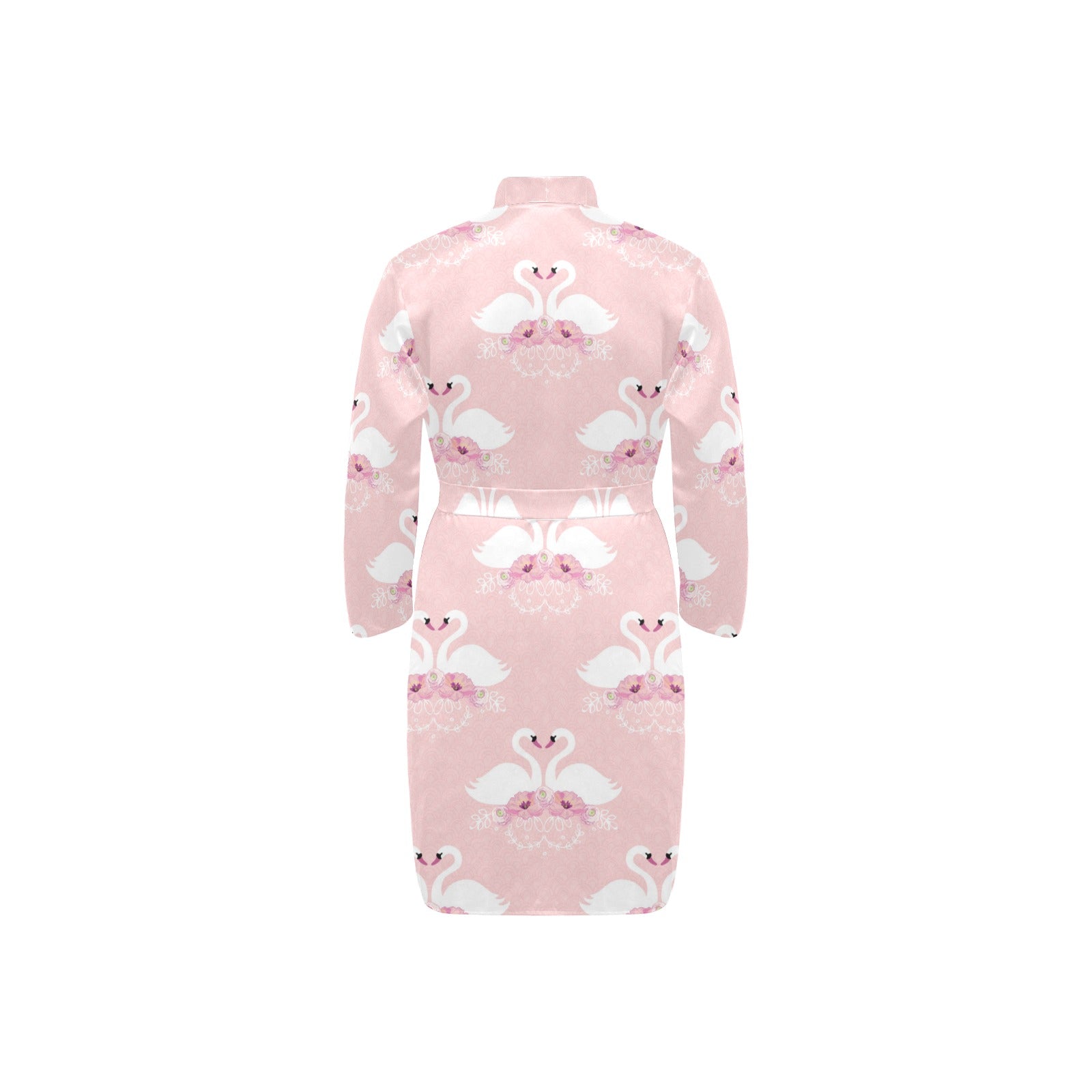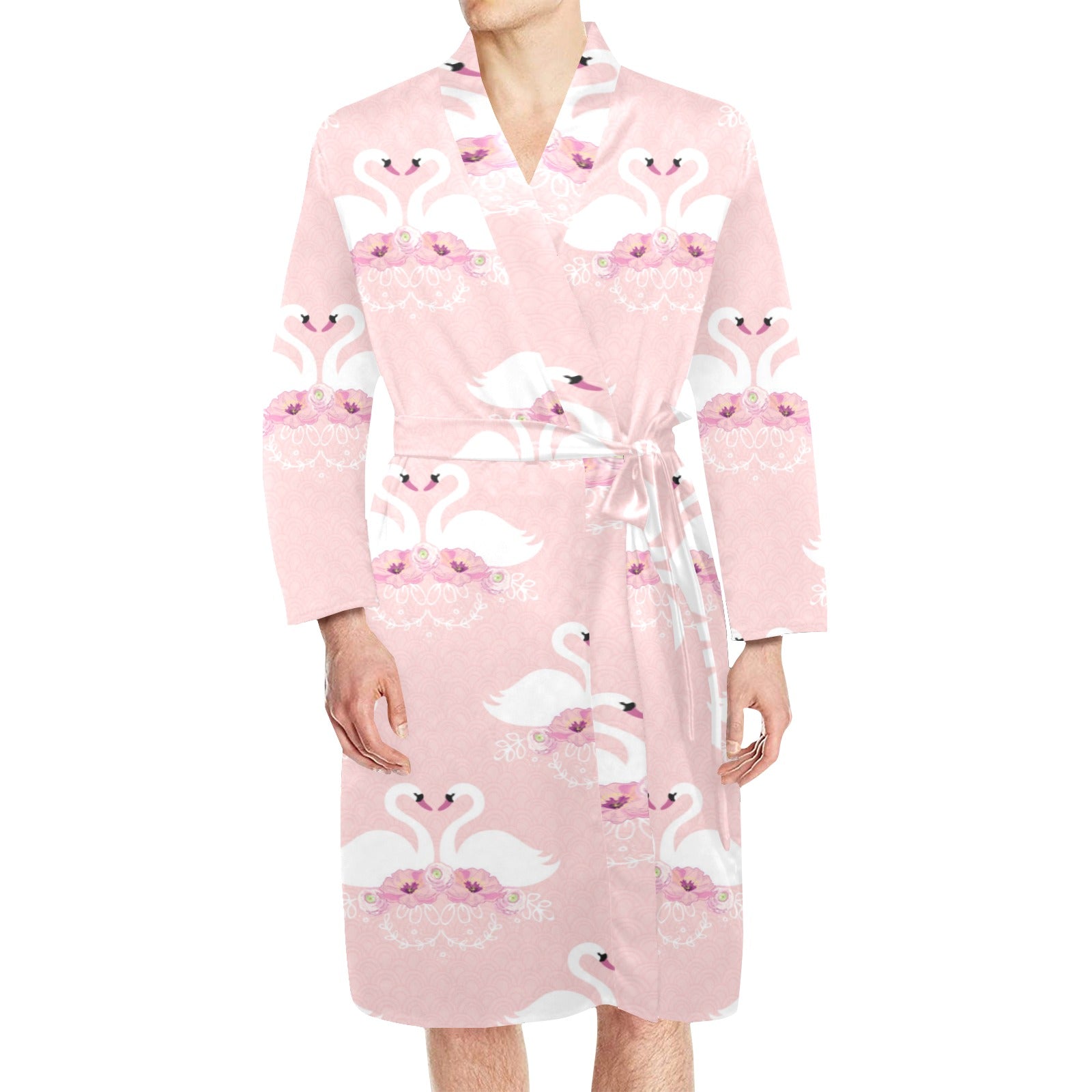 White swan and flower love pattern Men's Long Sleeve Belted Night Robe