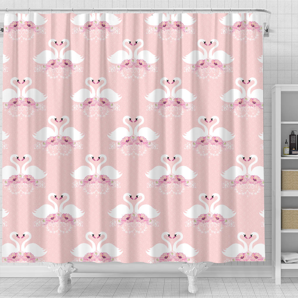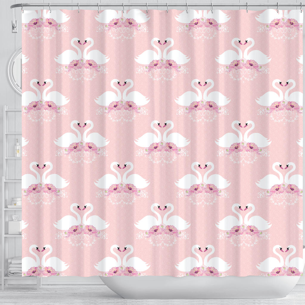 White Swan And Flower Love Pattern Shower Curtain Fulfilled In US