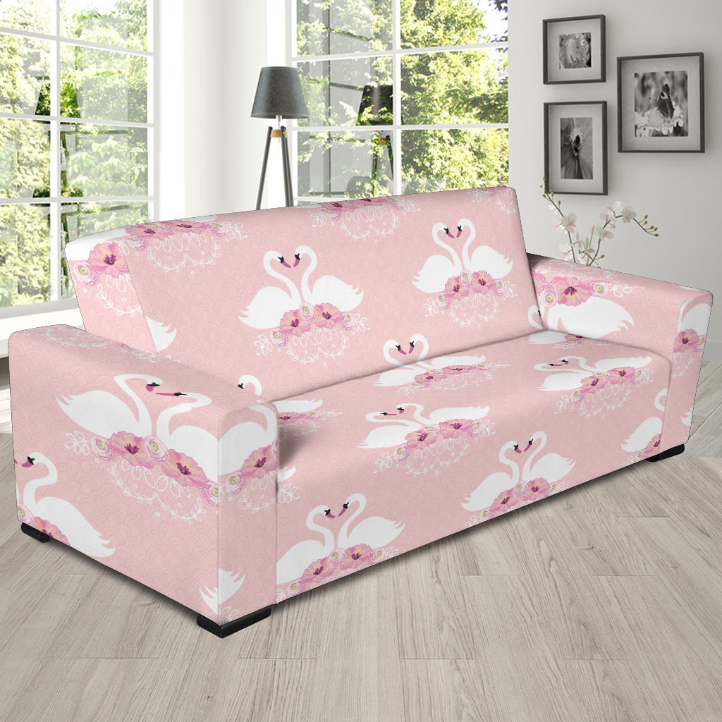 White Swan And Flower Love Pattern Sofa Slipcover