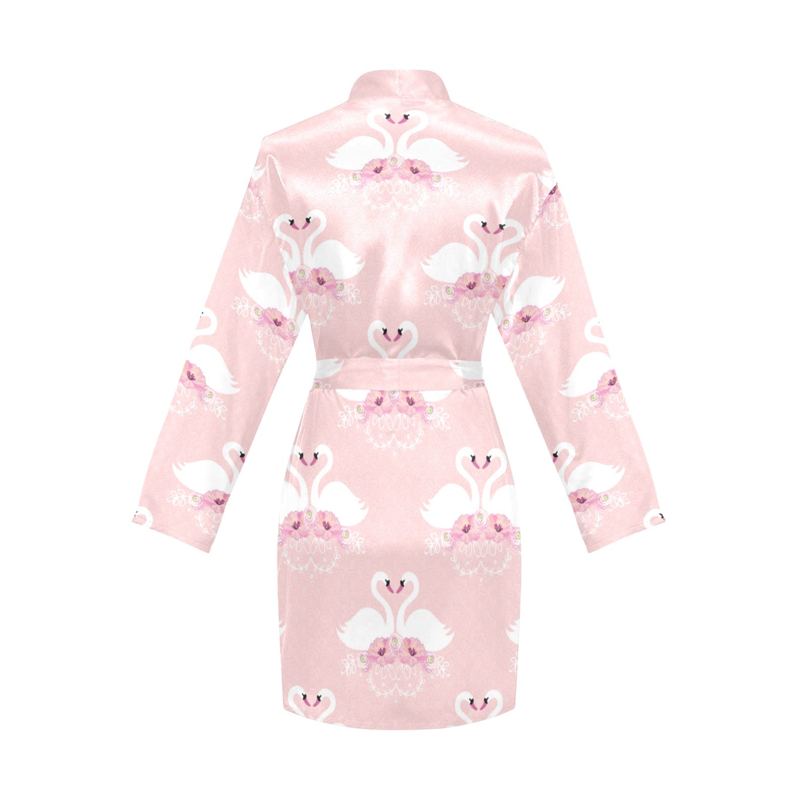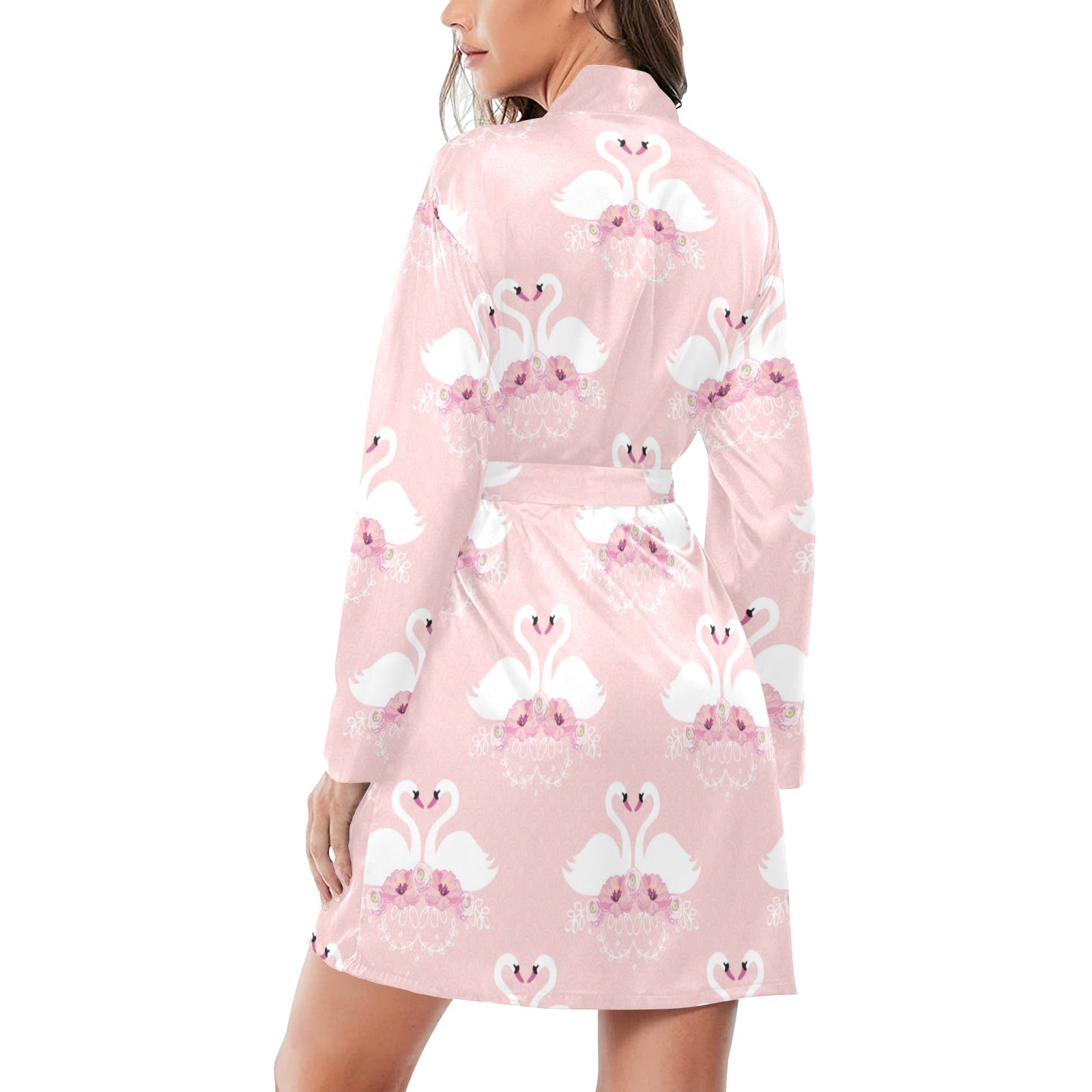 White swan and flower love pattern Women's Long Sleeve Belted Night Robe