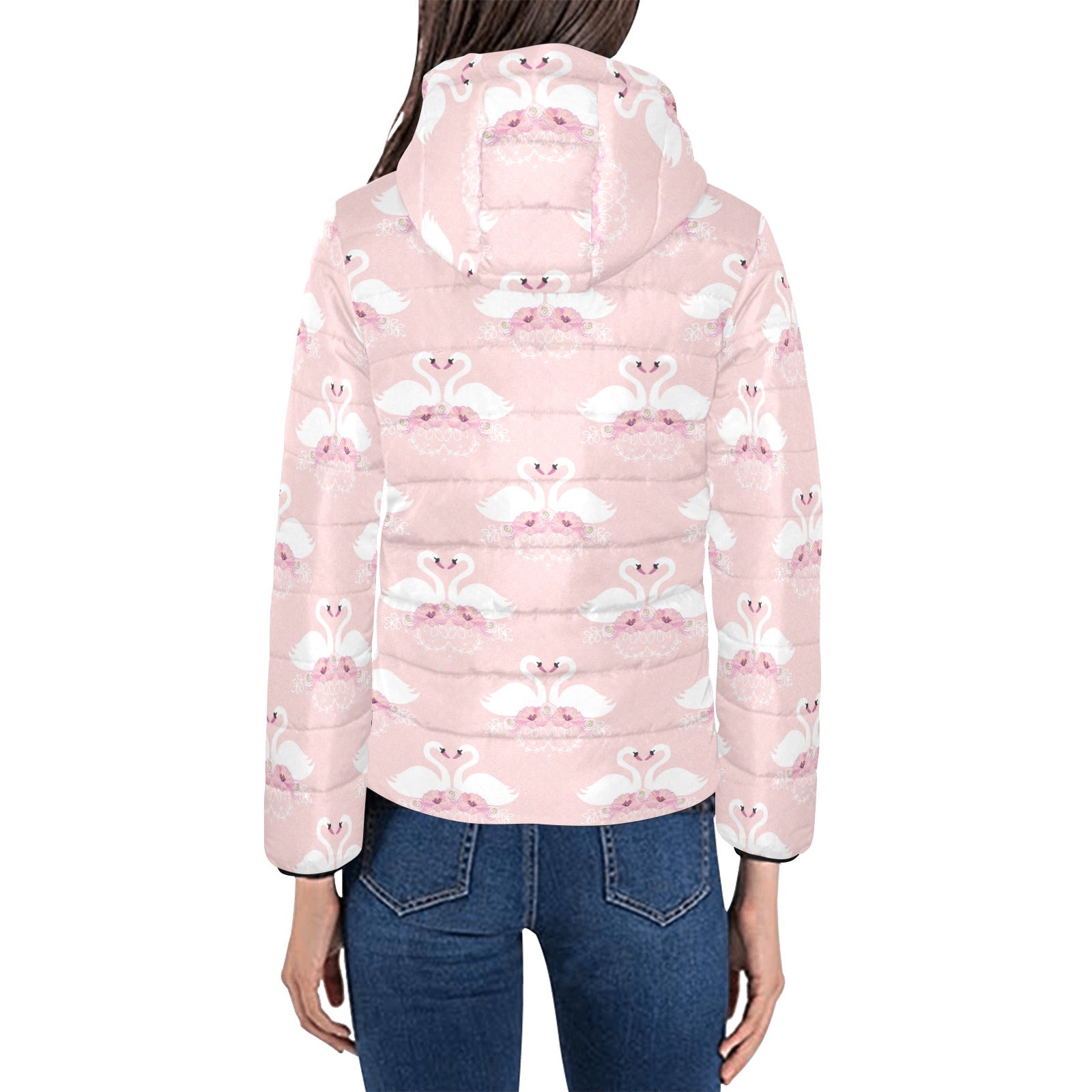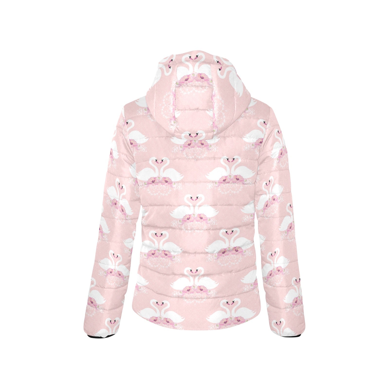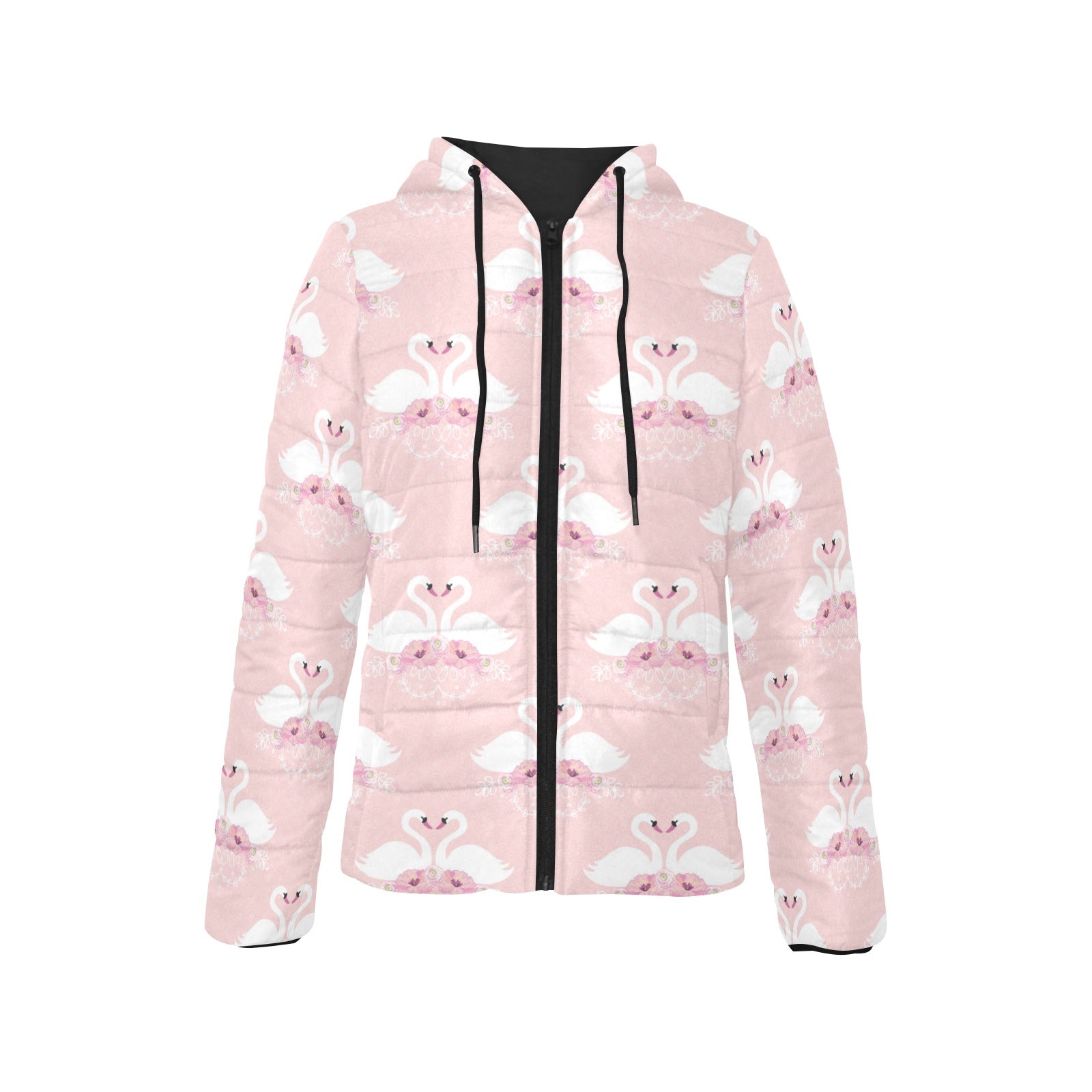 White swan and flower love pattern Women's Padded Hooded Jacket