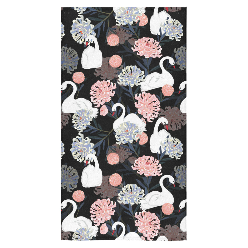 white swan blooming flower pattern Bath Towel 30"x56" is a uniqued design and limited item. It made to order, hand printed, and sewn with love in our factory.