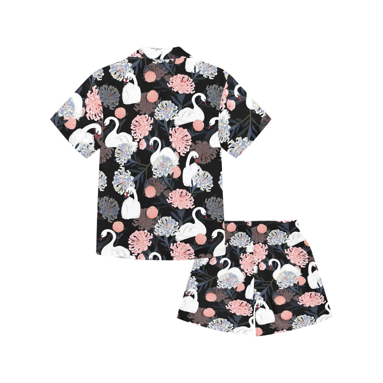 white swan blooming flower pattern Kids' Boys' Girls' V-Neck Short Pajama Set